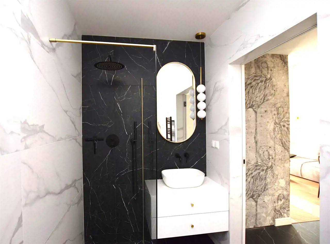 Apartament zaprojektowany przez pracownię projektową, wykończony z materiałów wysokiej jakości.