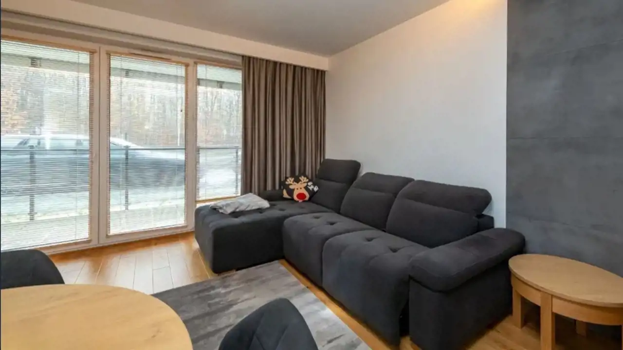 Mieszkanie znajduje się na parterze i posiada przestronny taras ok. 20 m², idealny do wypoczynku i spotkań na świeżym powietrzu. Funkcjonalny układ obejmuje salon z aneksem kuchennym, dwie niezależne sypialnie oraz łazienkę z WC.