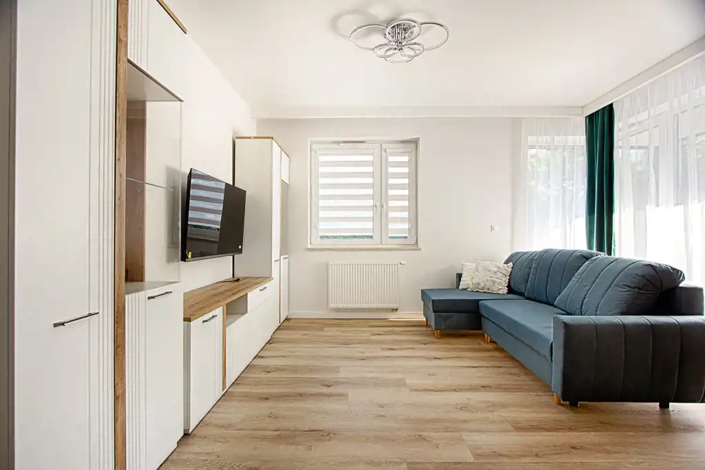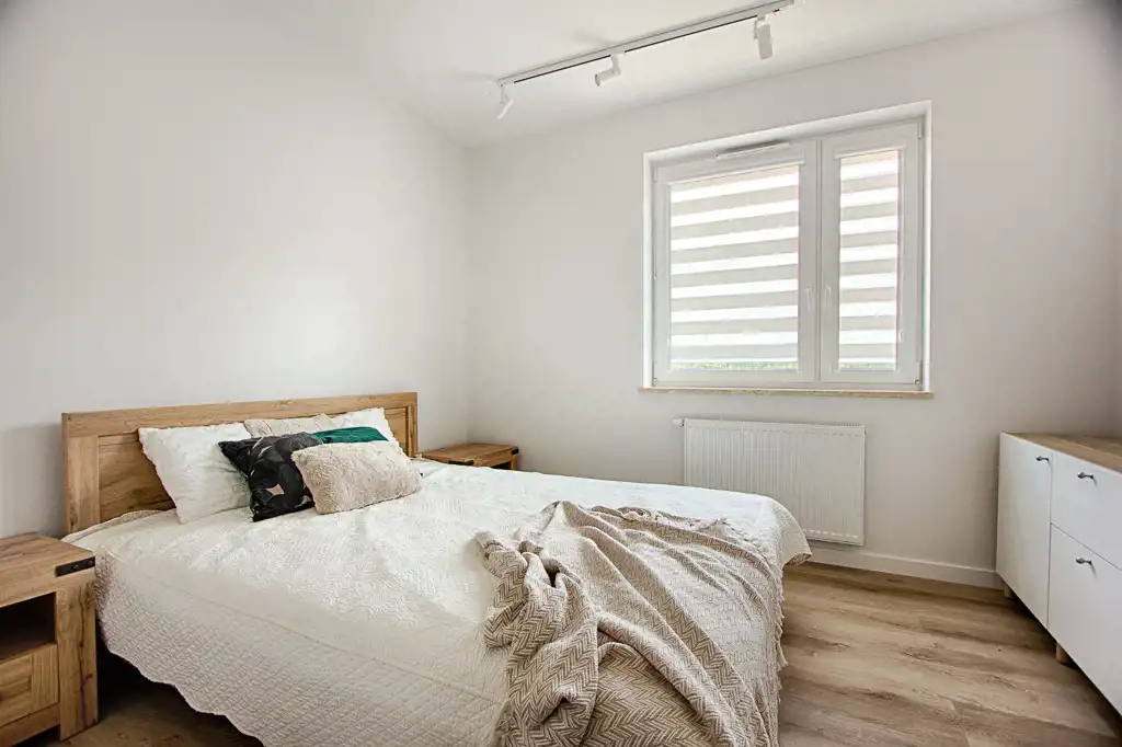- przestronną sypialnię z szafą w zabudowie