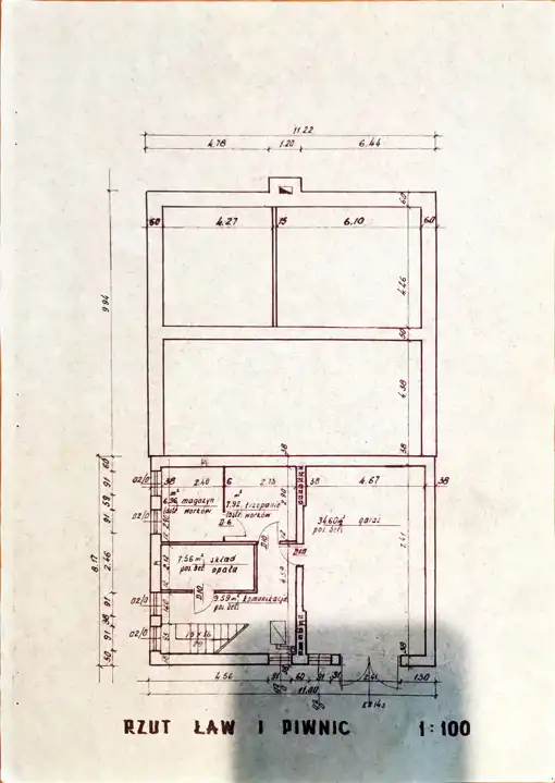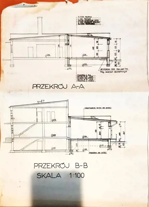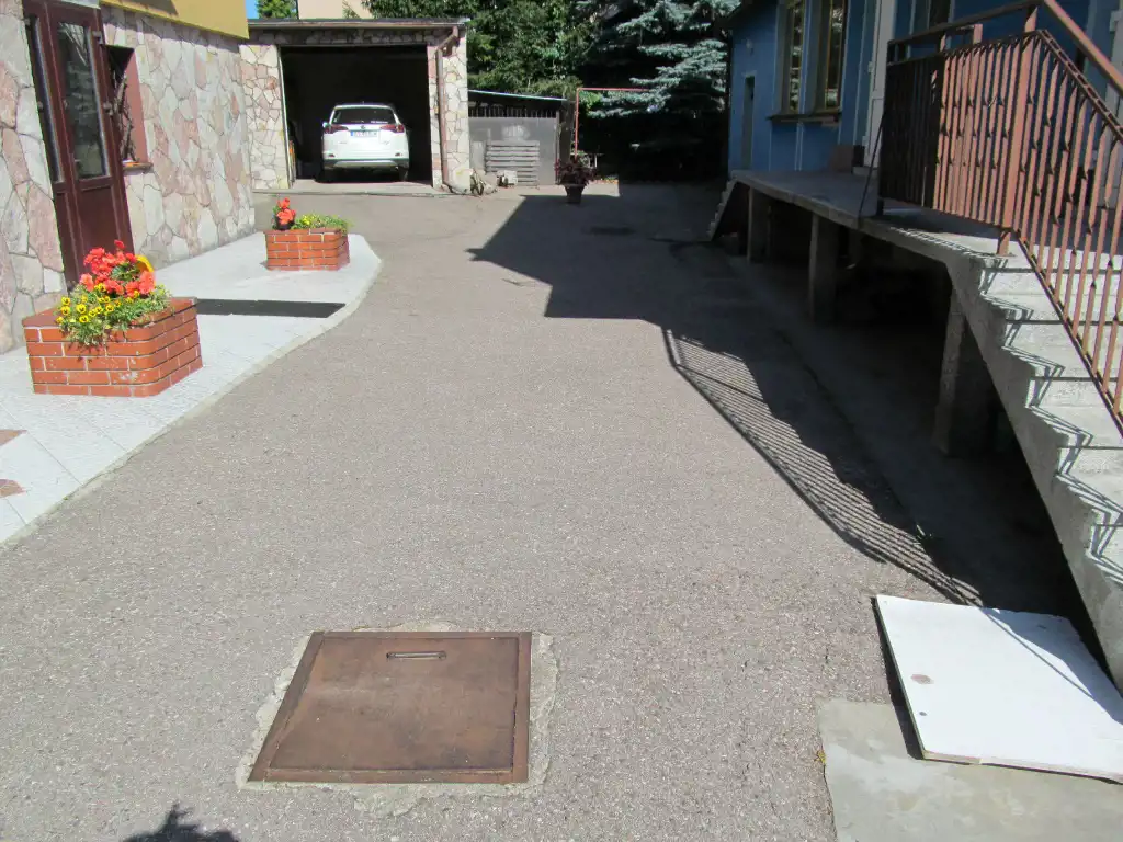 Budynek gospodarczy z garażem o powierzchni ok.200m2, parterowy, nieogrzewany.