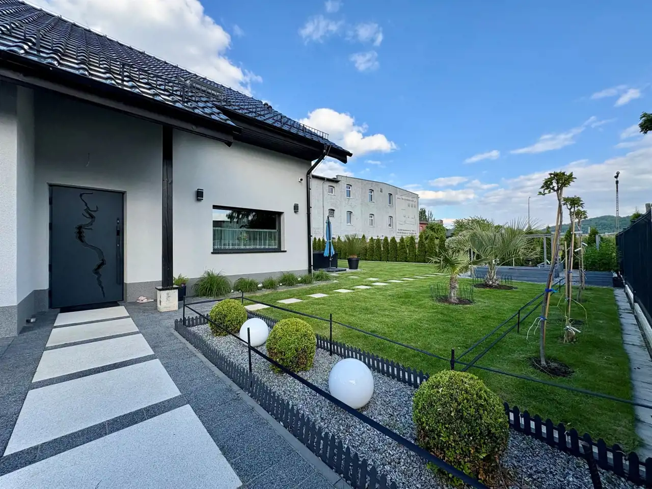 Dodatkowo na terenie posesji wykonano zbiornik na deszczówkę o pojemności 5000 litrów oraz nowoczesny system nawadniania. Budynek posiada dostęp do publicznej drogi dojazdowej.