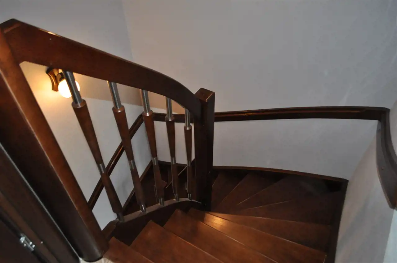 Parapety z kamienia naturalnego, w łazienkach kamienne blaty. Okna PCV z okleina drewnopodobną.