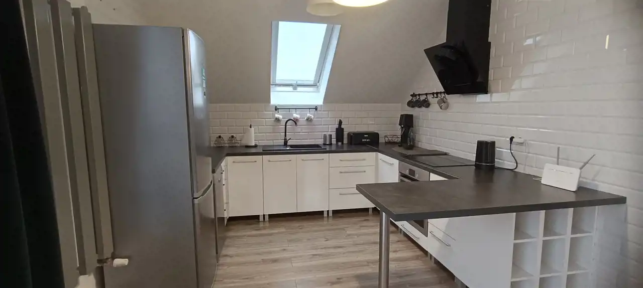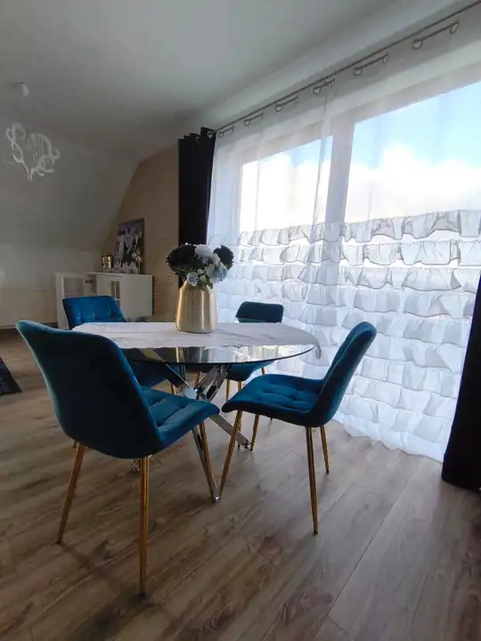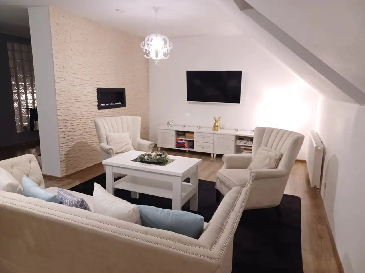 - salon z bio-kominkiem, aneksem kuchennym i wyjściem na duży balkon