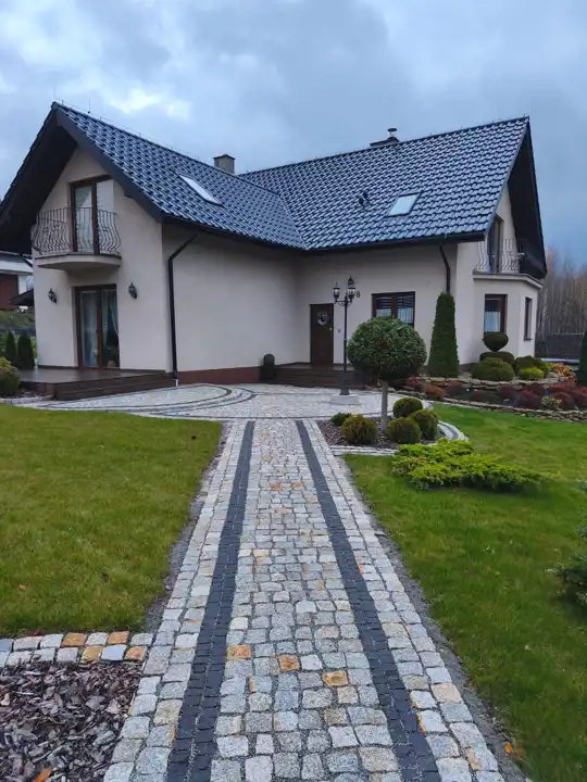 Pięknie zaaranżowany ogród z licznymi nasadzeniami, zagospodarowany i bardzo dobrze utzrymany, przedogródek ze ścieżkami wyłożonymi kostką granitową, stylową latarnią, dwie bamy wjazdowe otwierane automatycznie.