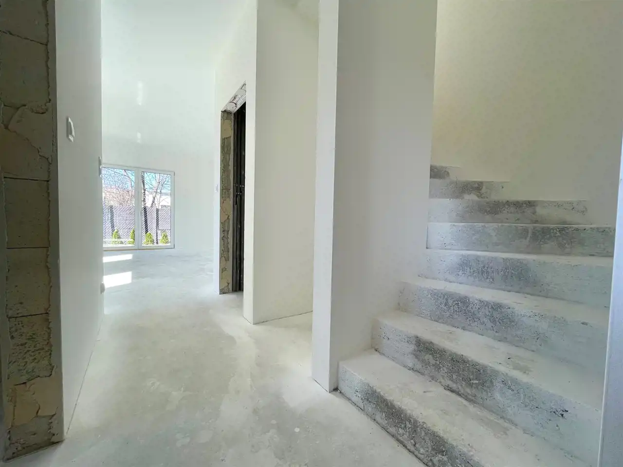 Część mieszkalna na parterze ofertuje przestrony otwarty salon połączony z kuchnią, łazienkę z WC, kotłownie oraz korytarz z miejscem na szafę wnękową. Piętro to trzy sypialnie w tym jedna z garderobą, łazienka oraz przedpokój.