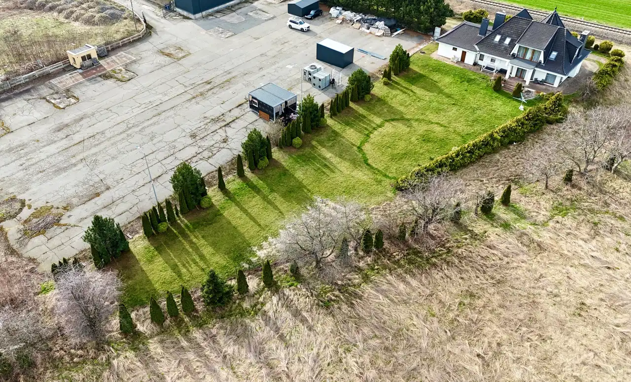 Działka sąsiaduje bezpośrednio z domem jednorodzinnym.