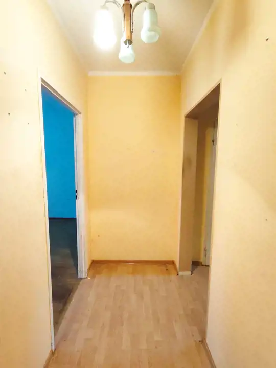Rozkład: duży salon, pokój, kuchnia dwa przedpokoje, łazienka z WC.
