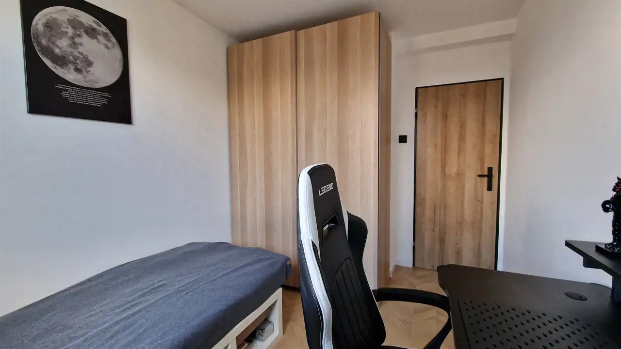 ✅ Pokój do własnej aranżacji – idealny na gabinet, pokój dziecięcy lub garderobę; wyposażony w pojemną szafę w zabudowie, w której mieści się pralka oraz boiler na ciepłą wodę