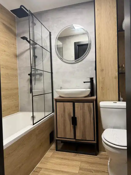 Ogrzewanie i ciepła woda z kotłowni miejskiej, okna PCV, łazienka wyposażona w wannę, w kuchni meble pod zabudowę.