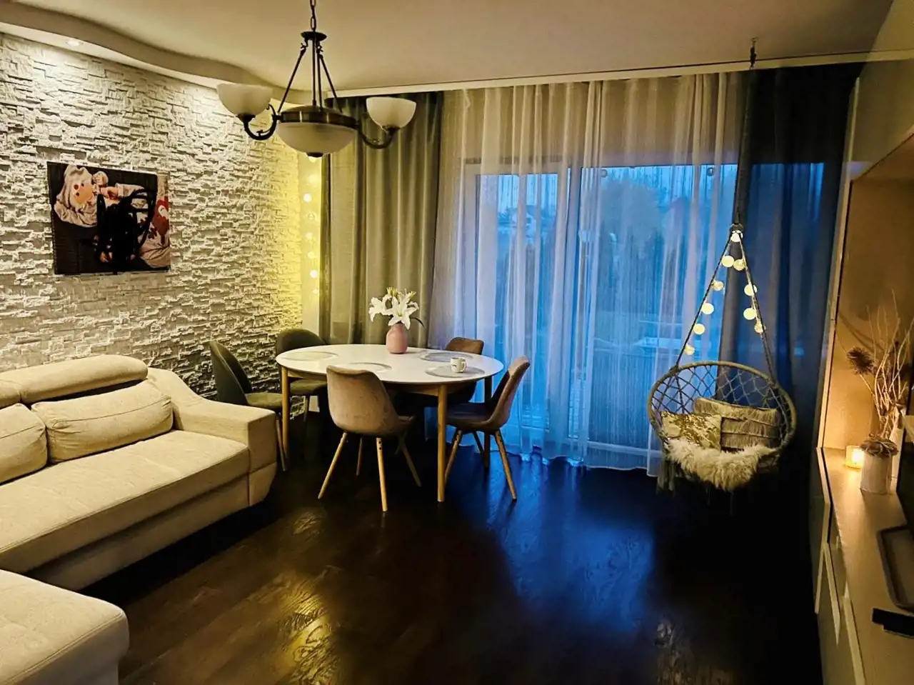 Mieszkanie urządzone i kompletnie wykończone – gotowe do wprowadzenia bez nakładów finansowych. Oferowane z wyposażeniem (z wyłączeniem TV oraz drobnego AGD)