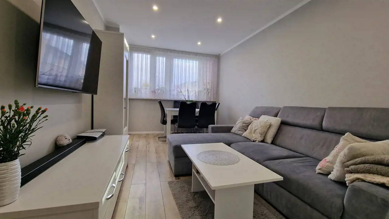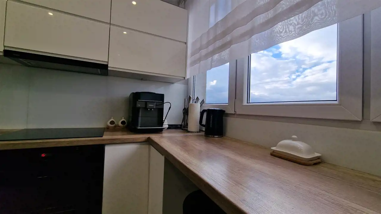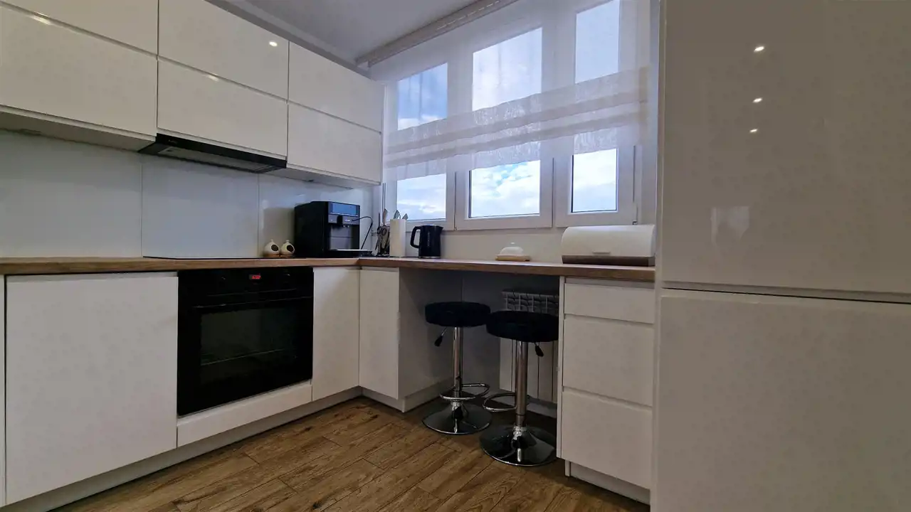 Mieszkanie zostało urządzone z dbałością o detale i funkcjonalność. Jest w pełni wyposażone – szczegóły dotyczące umeblowania pozostają do indywidualnego uzgodnienia. Lokal nie wymaga żadnych dodatkowych inwestycji i jest gotowy do natychmiastowego zamieszkania.
