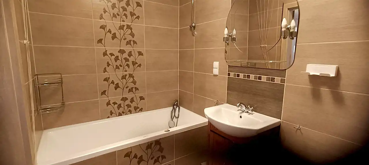 Standard: duże panoramiczne okna PCV, kamienne parapety wewnętrzne, centralne ogrzewanie z nowoczesnej, energooszczędnej lokalnej kotłowni. Łazienka wyposażona w wannę i umywalkę, w kuchni meble pod zabudowę, w przedpokoju oraz sypialni szafy wnękowe.