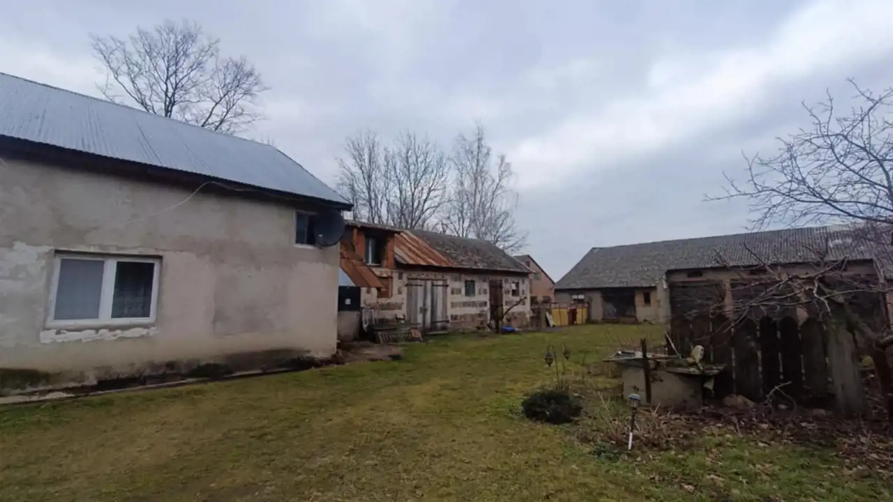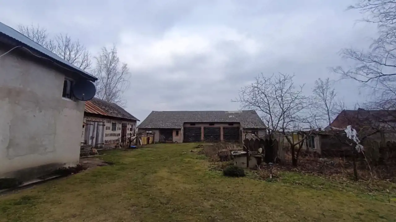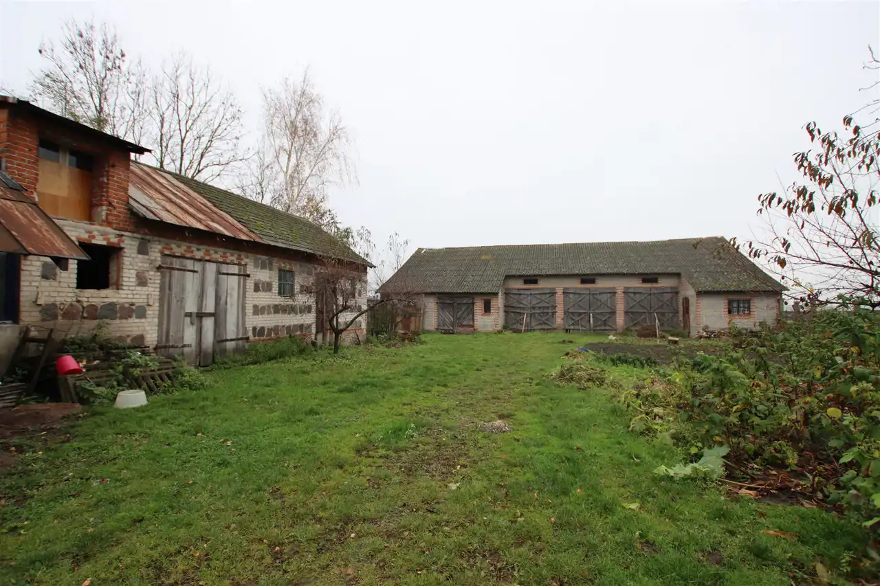 Dom został posadowiony na działce rolnej o powierzchni 2,09ha. Klasa ziemi: IIIb, IVa, IVb, V. Na tej samej działce znajduję się również duża murowana stodoła, budynki gospodarcze bezpośrednio przynależące do domu oraz stary drewniany dom do rozbiórki.