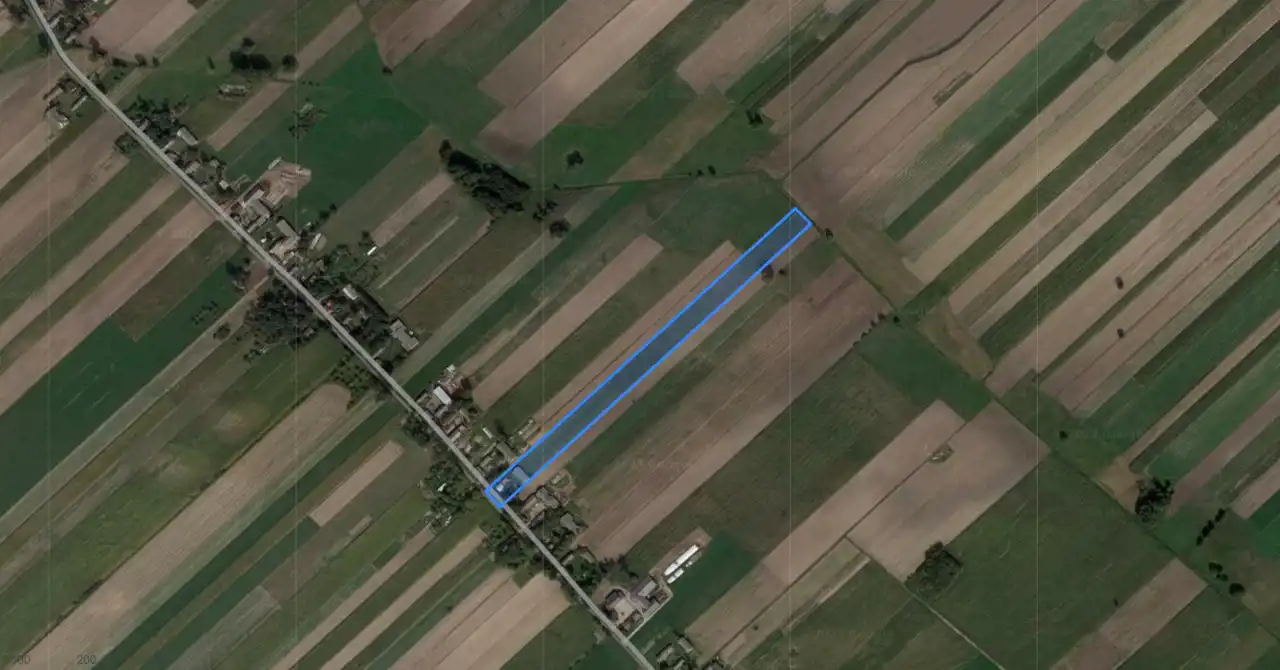 Działka nieogrodzona w kształcie prostokąta.