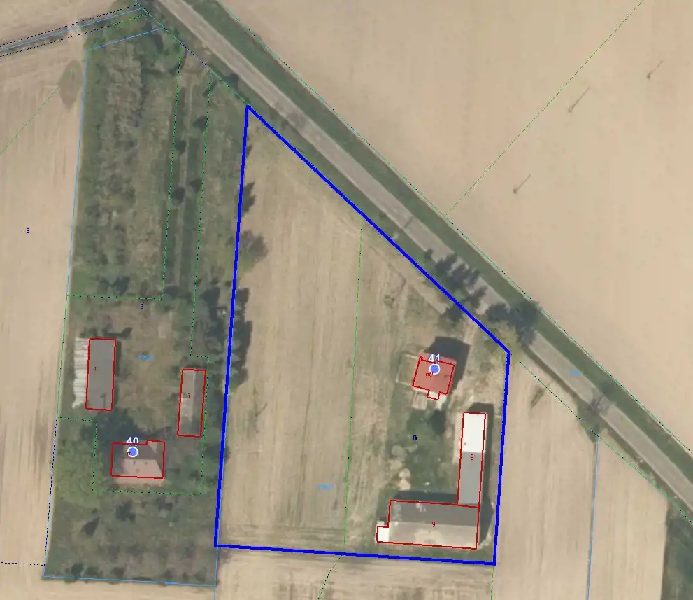 Działka o pow. 7047m2 (klasa IIIa i IIIb) stanowi naturalne siedlisko składające się z murowanych budynków: wolnostojącego mieszkalnego, piętrowego ok.170m2 , stodoło-obory ok. 200m2 oraz budynku gospodarczego ok.200m2 ( w stanie do remontu)