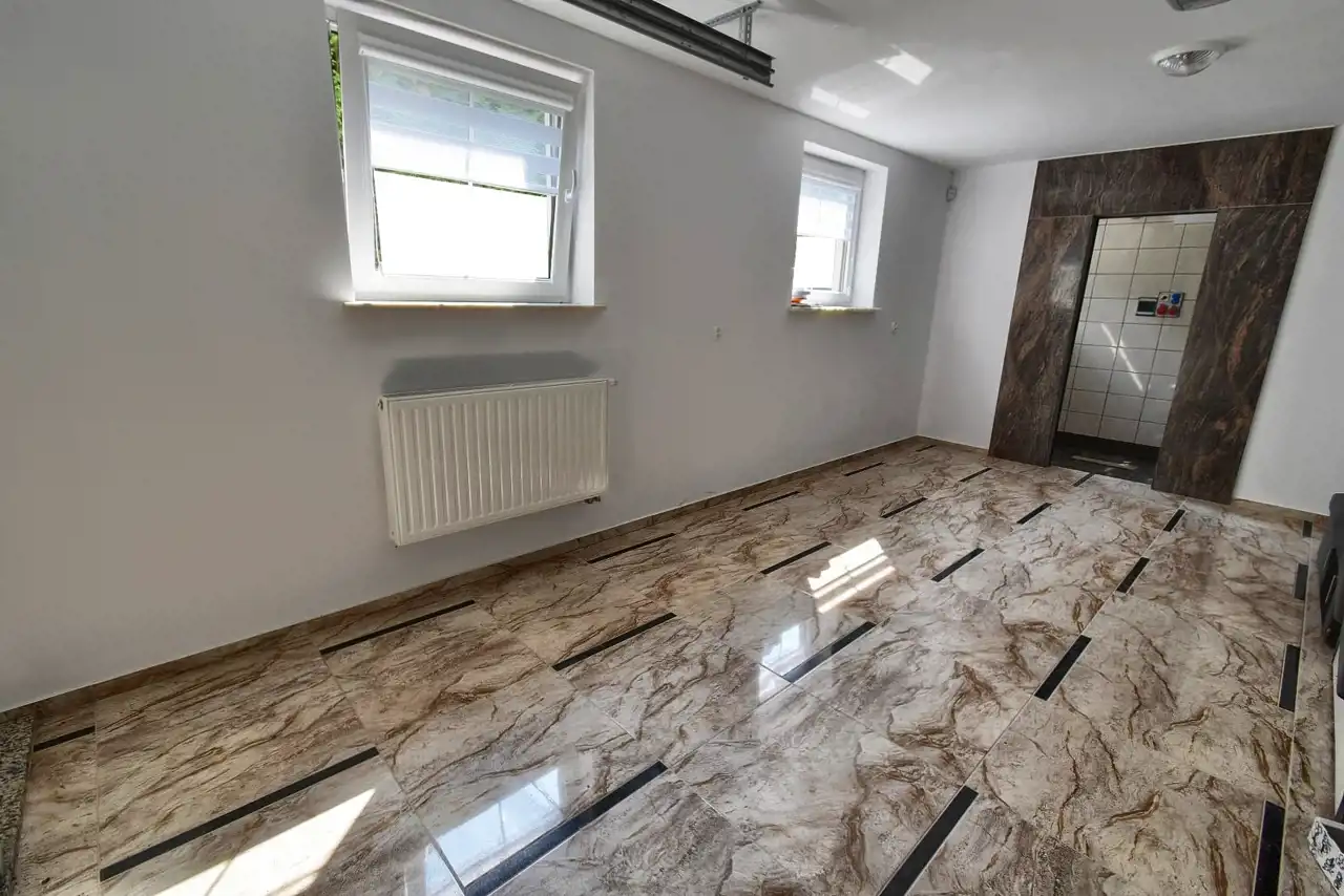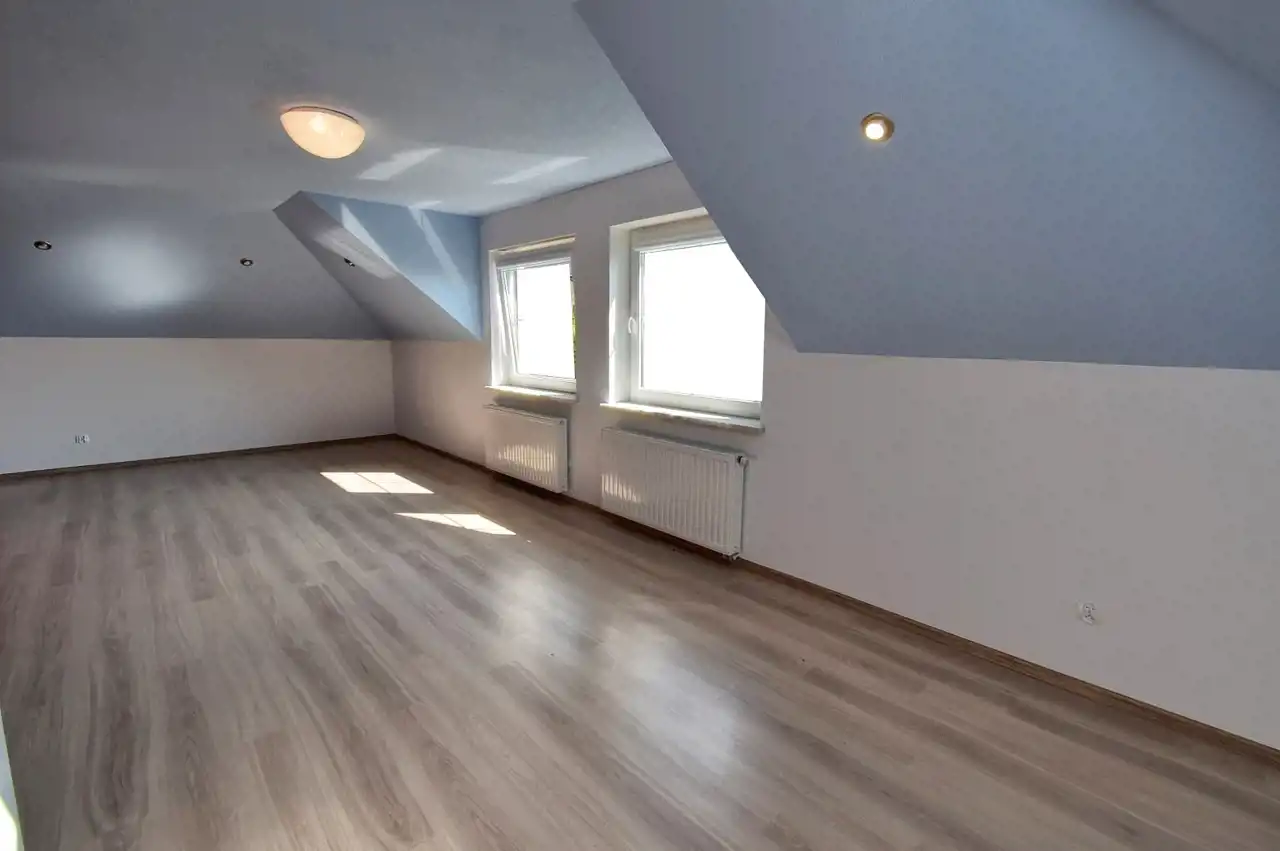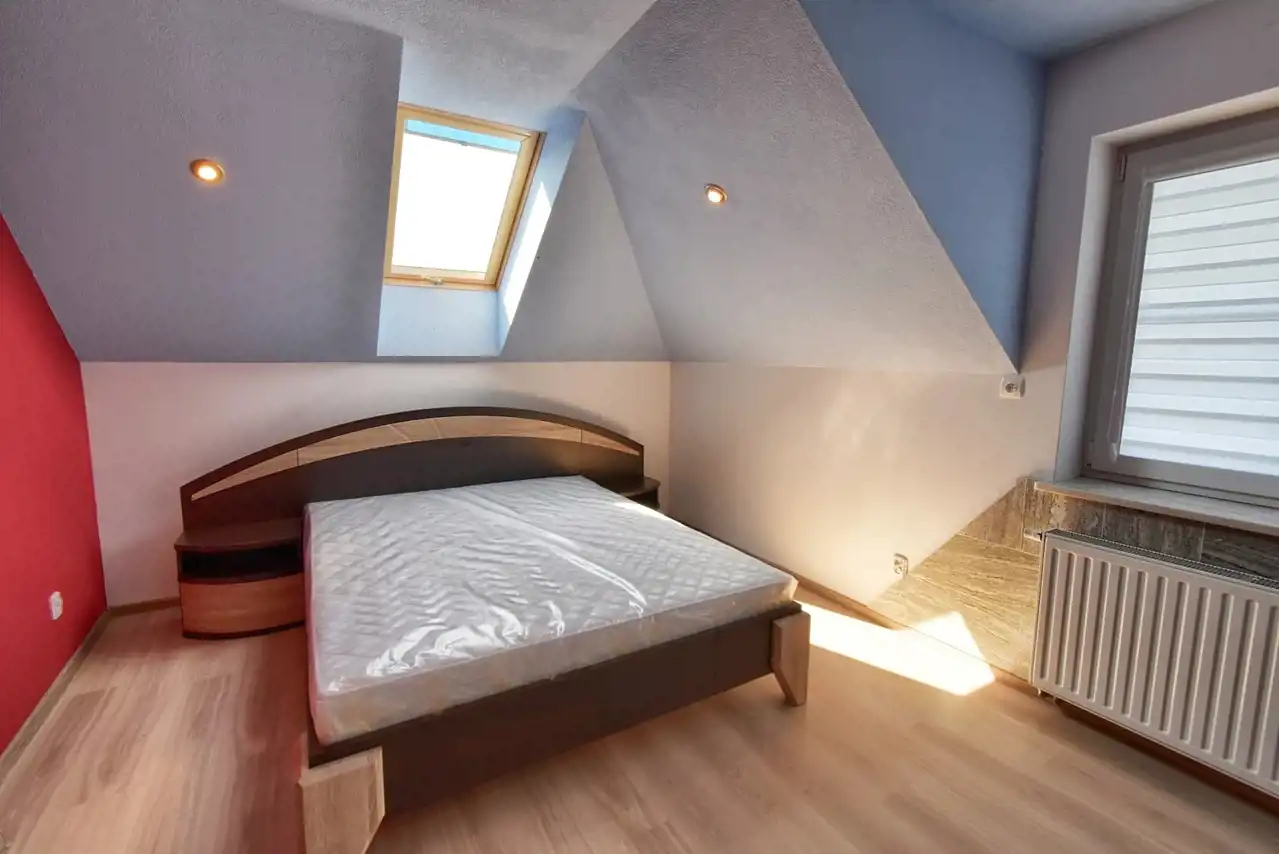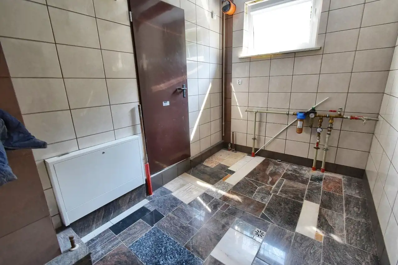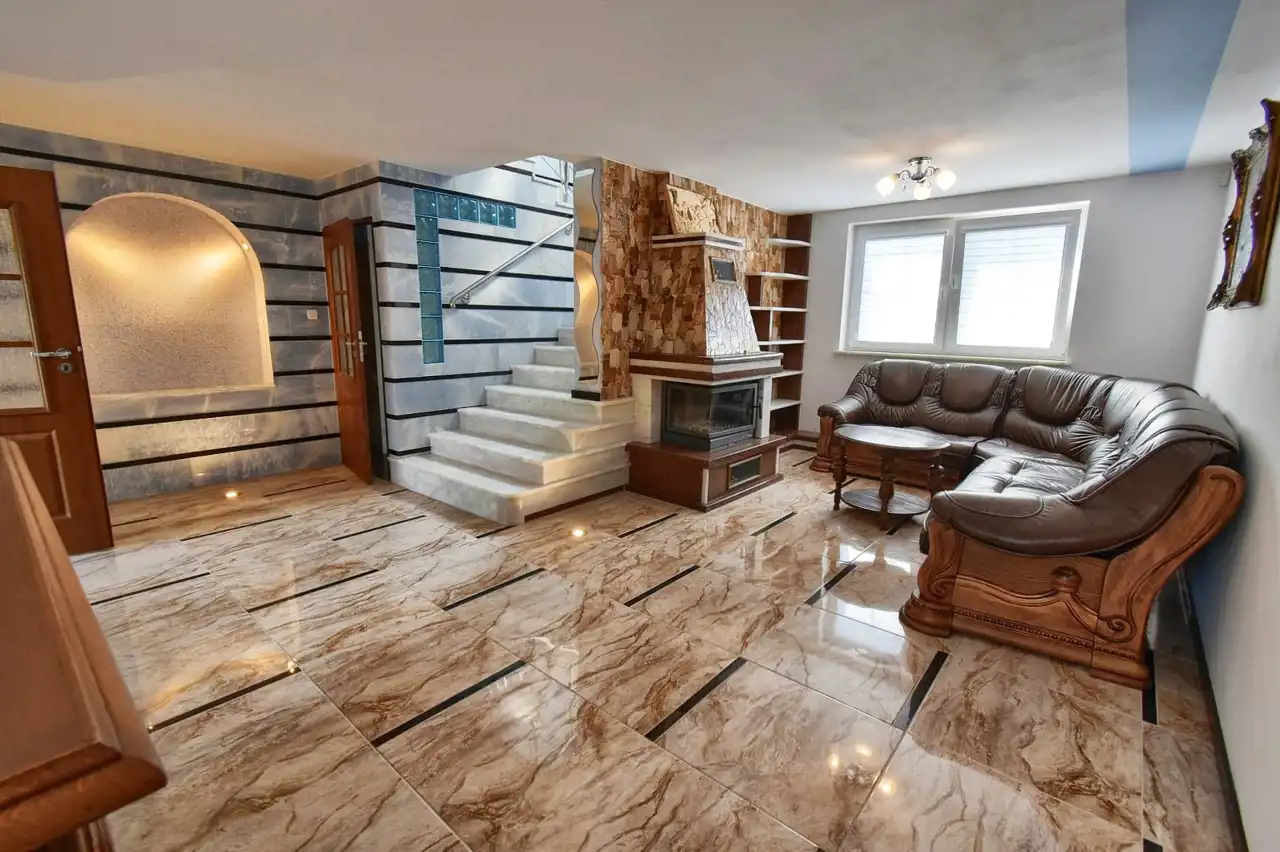 The rectangular-shaped plot measures about 20 x 30 m. Front width is 20 m. The plot is fenced and landscaped. There is also a well with drinking water at a depth of approximately 10 meters on the plot. The house is constructed with red MAX bricks, insulated with approximately 12 cm of styrofoam. The building includes a single-car garage. The roof is covered with metal roof tiles and insulated with wool and styrofoam. PVC windows are installed. The heating is provided by a fireplace, but there are also provisions for a heat pump and a solid fuel stove. Underfloor heating is installed on the entire ground floor, while radiators are installed upstairs.