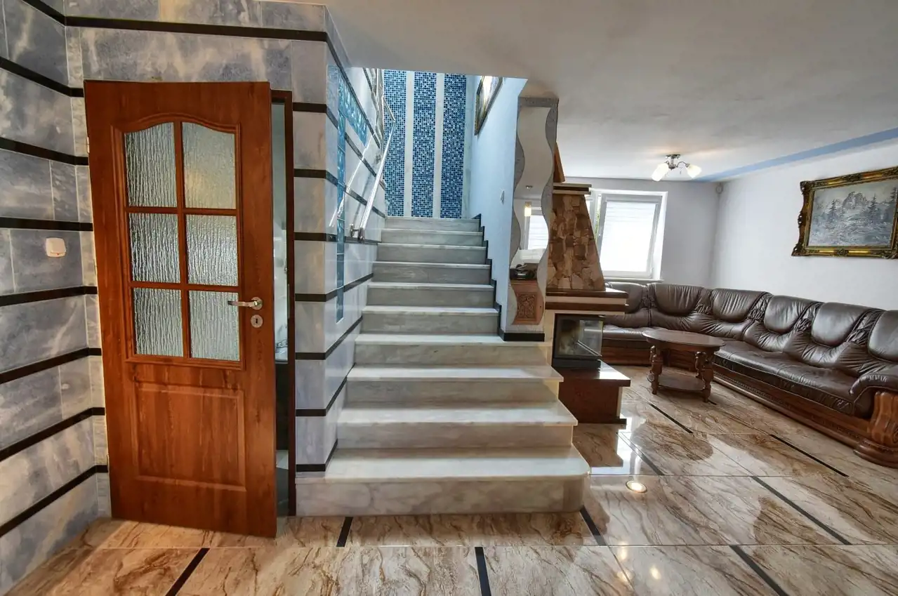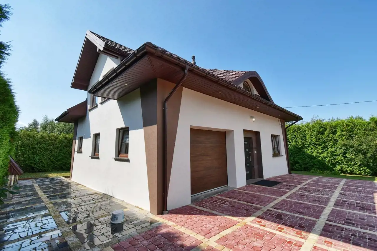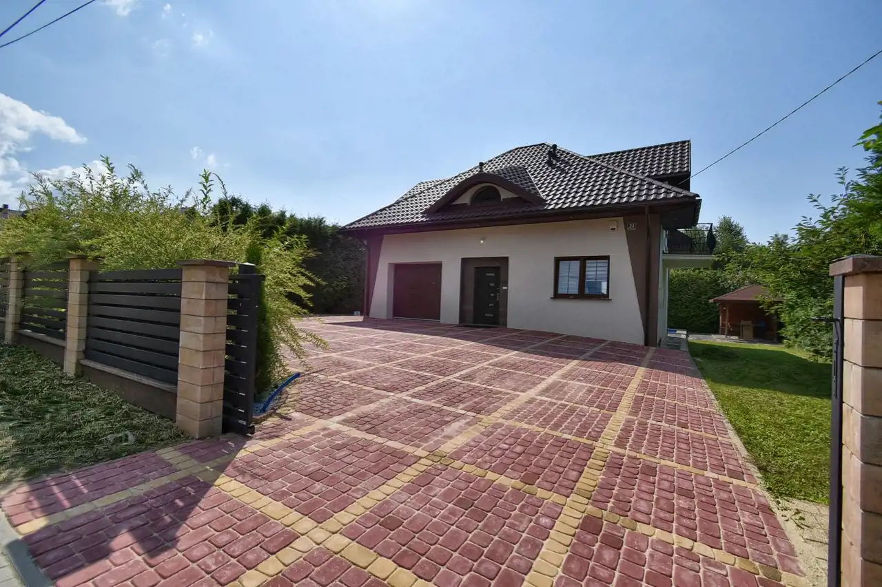 Działka w kształcie prostokąta, o wymiarach około 20 x 30 [m]. Szerokość od frontu - 20 m. Działka ogrodzona, zagospodarowana. Na działce znajduje się również studnia z wodą pitną ok. 10 m głębokości. Dom wybudowany z cegły czerwonej MAX, ocieplony styropianem ok.12 cm. W bryle budynku znajduje się jednostanowiskowy garaż. Dach pokryty blachodachówką, ocieplony wełną oraz styropianem. Okna PCV. Ogrzewanie kominkowe, ale są również wyjścia pod pompę ciepła i piec na paliwa stałe. Na całym parterze jest ogrzewanie podłogowe na górze zainstalowane zostały grzejniki.