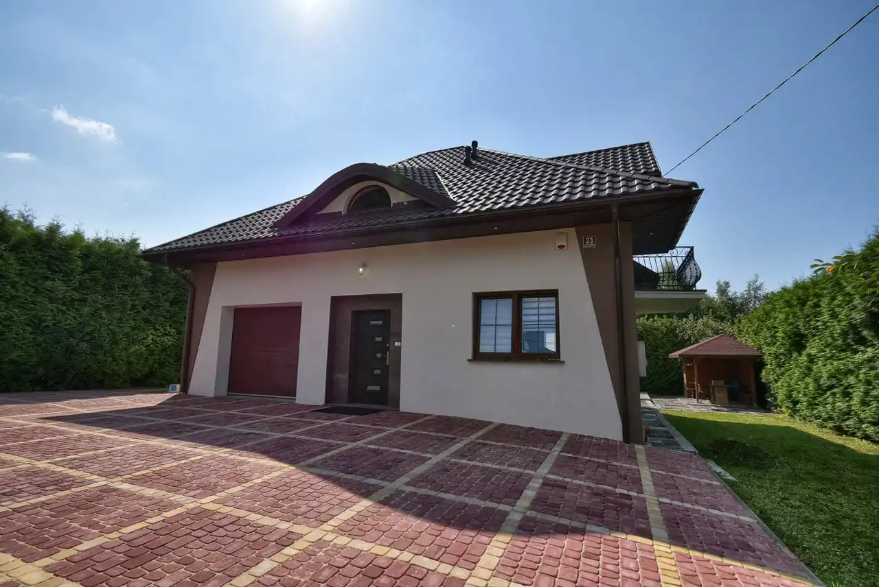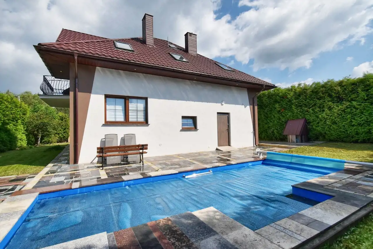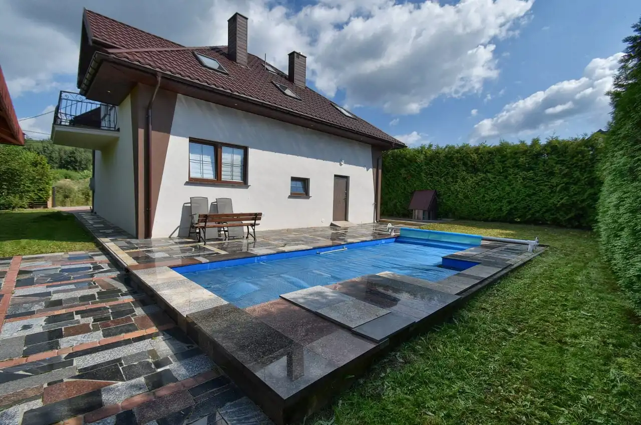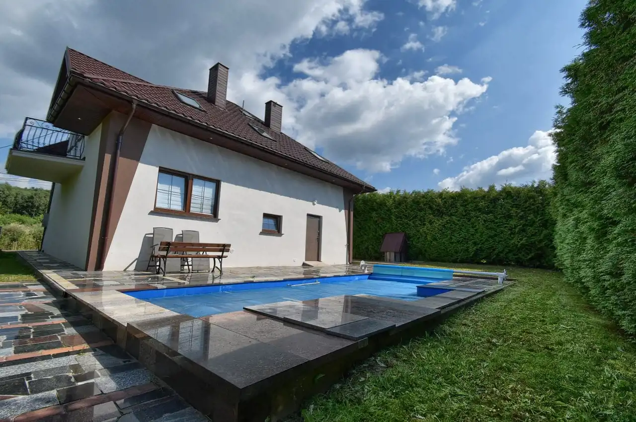 For Sale: A 4-bedroom detached house with a living area of approximately 111.48 sqm (total area approximately 134.31 sqm) with a pool, located on a plot of land measuring 598 m² in Huta Podłysica, Bieliny municipality.