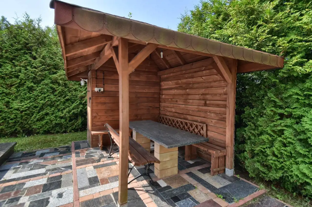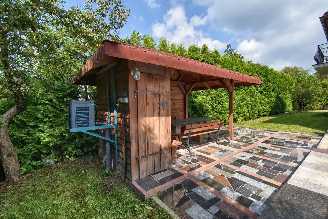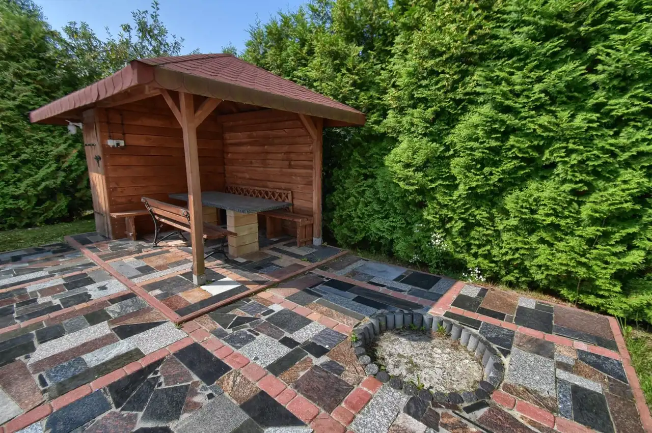 Na działce znajduje się basen o głębokości ok. 2m, drewutnia i altana z miejscem na grilla.