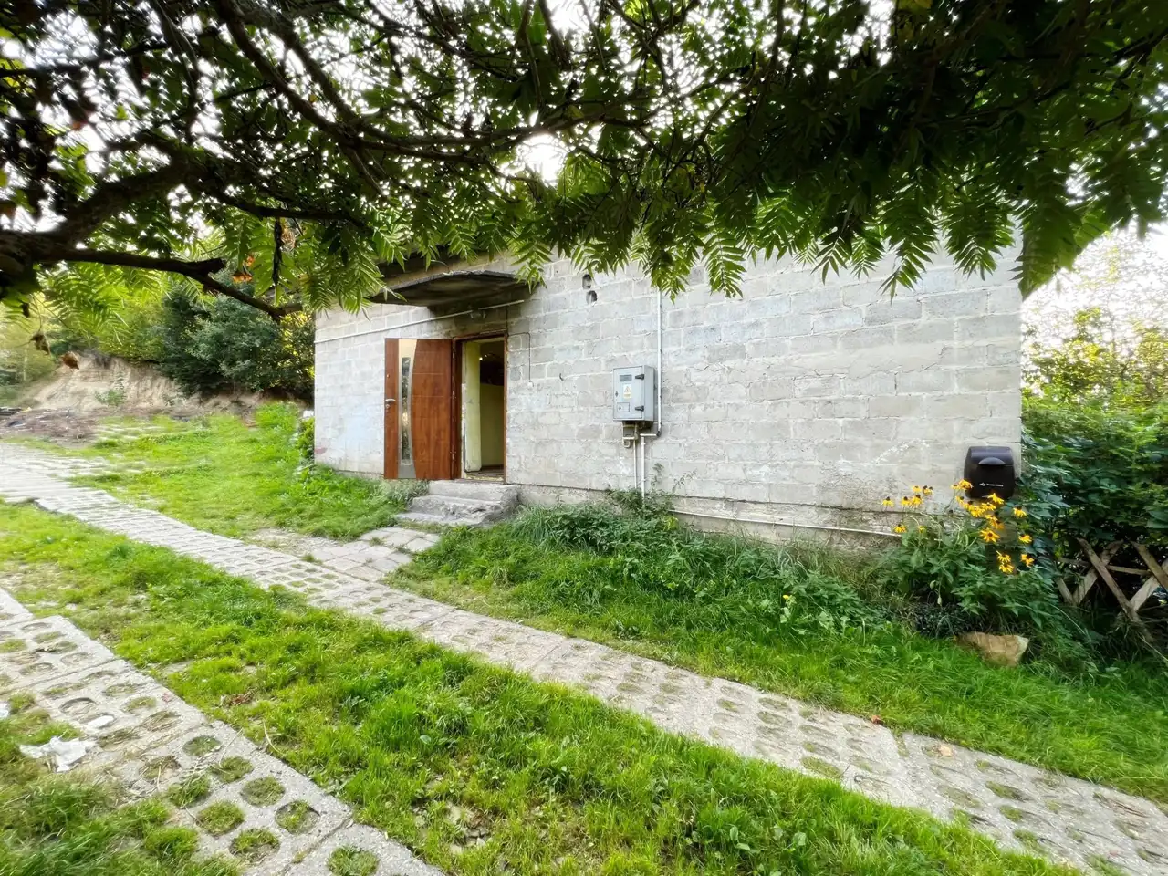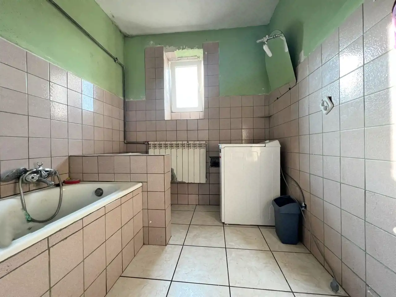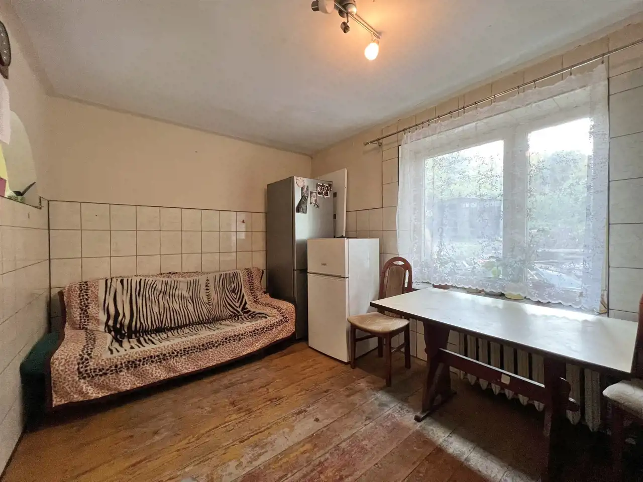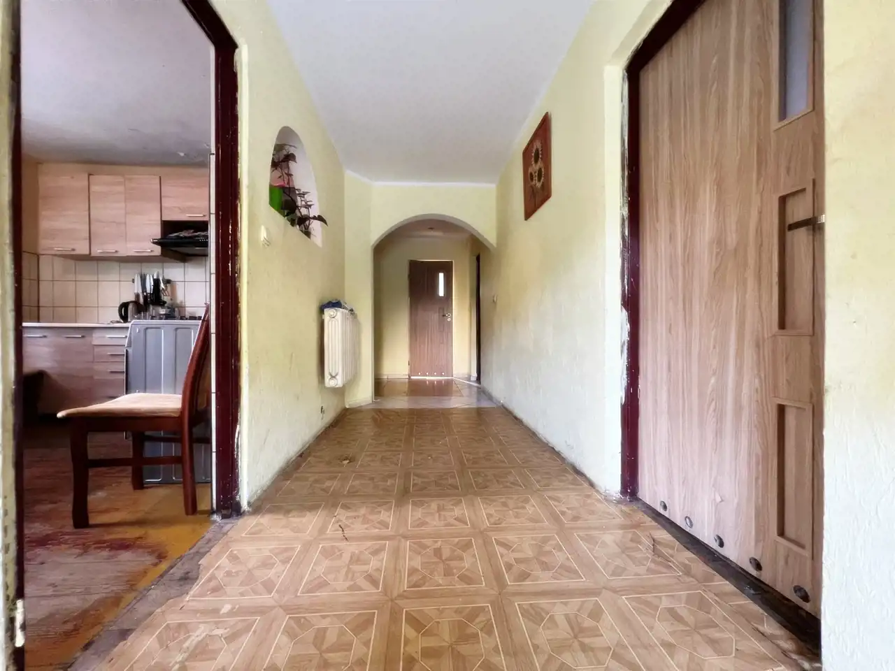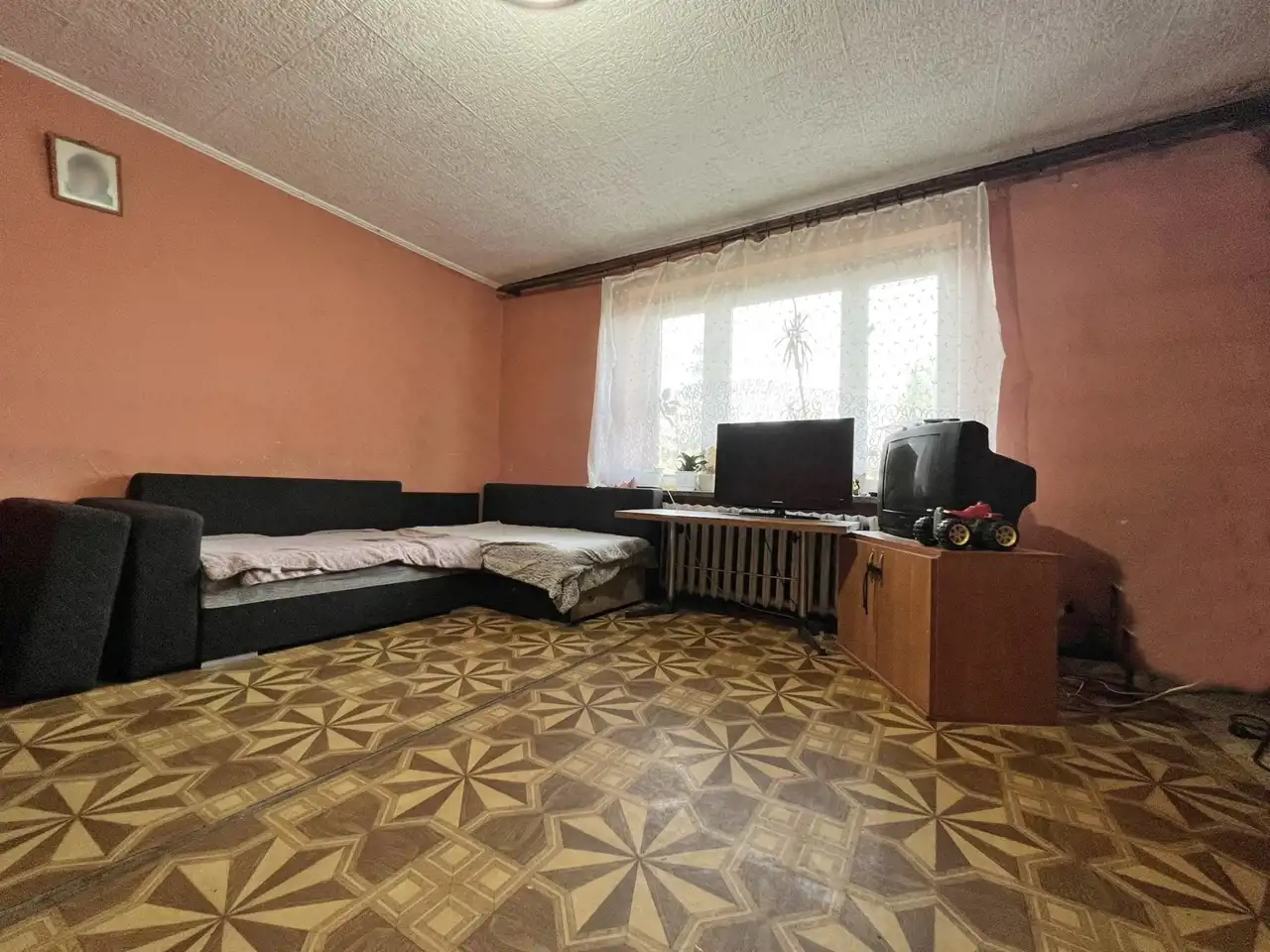 For Sale: Detached house with a usable area of approximately 100 sqm (total area approximately 130sqm), located in Huta Nowa, Bieliny municipality. The house was built in 1997, with an asbestos roof, wooden windows, and constructed using slag brick. Heating is provided by a solid fuel furnace. The property includes a metal garage and is partially fenced. The house requires renovation.