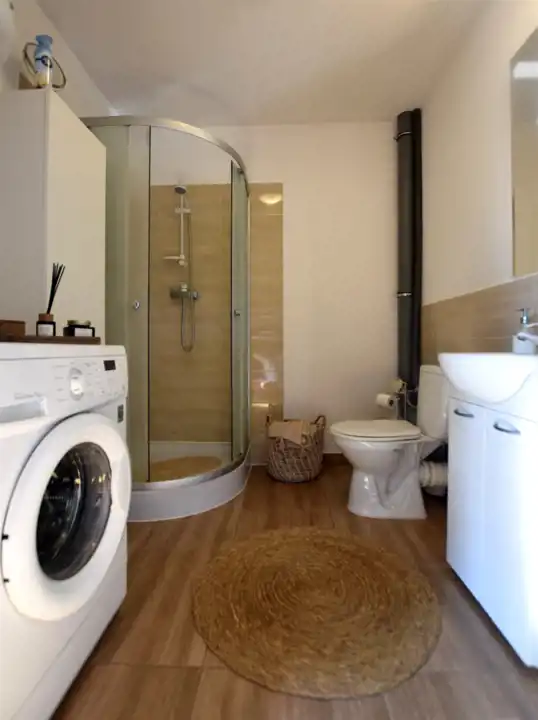 Na parterze znajduje się salon wypoczynkowy połączony z kuchnią, sypialnia oraz łazienka z prysznicem. Na piętrze z osobnym wejściem dwie sypialnie oraz toaleta. Dojazd do posiadłości droga asfaltową, media ( prąd, woda, szambo, internet, tv- nc+). Dom ogrzewany piecem kaflowym z rozprowadzeniem na cały dom oraz elektryczne grzejniki.
