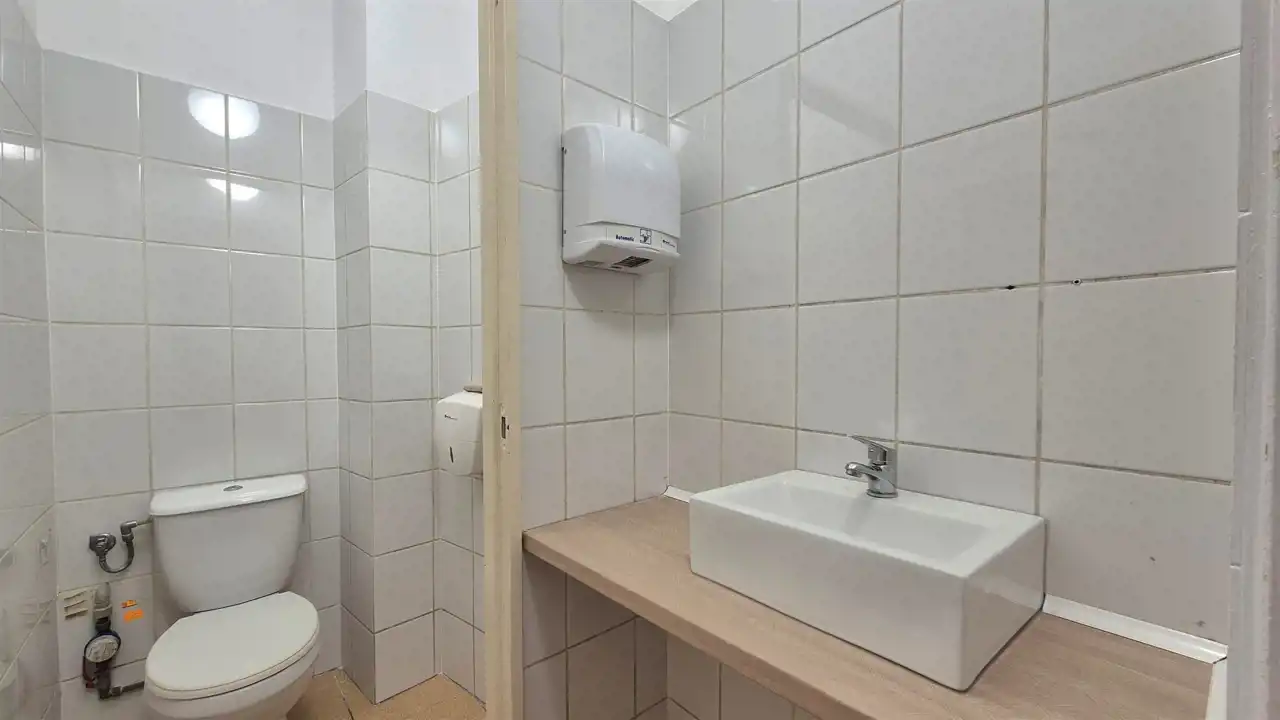 Lokal składa się z dwóch części oddzielonych drzwiami. W drugiej części znajduje się toaleta i mały zamykany schowek.
