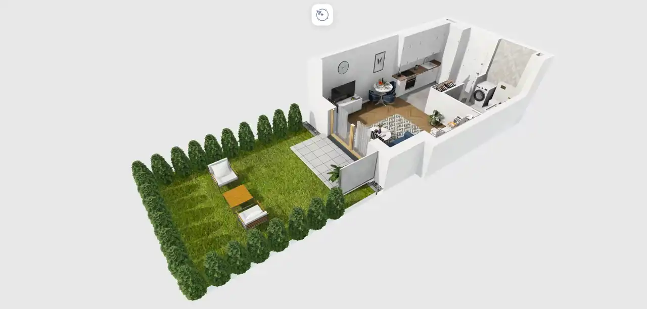 - Ogródek: 13,82 m² – Twój mały raj na ziemi, idealny na poranną kawę, a może hodowlę własnych ziół?