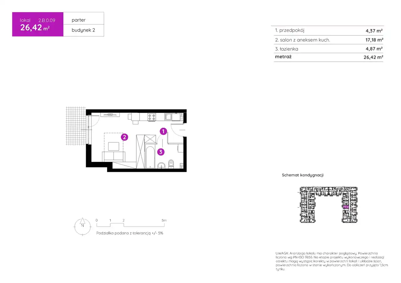 - Charakterystyka mieszkania 26.42 m2, 1 pokój