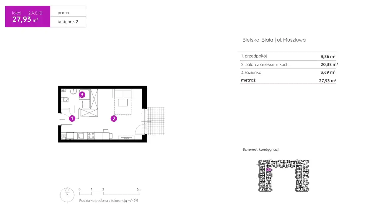 - Charakterystyka mieszkania 27.93 m2, 1 pokój
