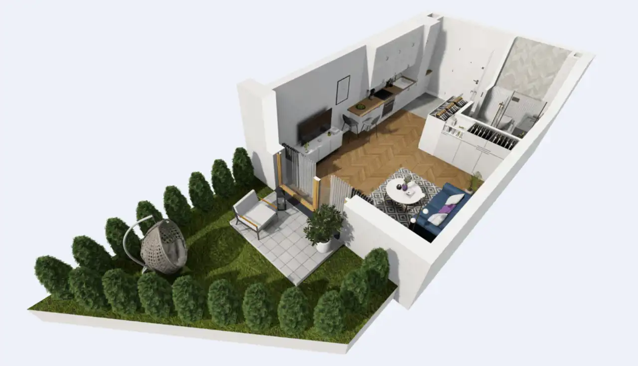 - Ogródek: 13,82 m² – Twój mały raj na ziemi, idealny na poranną kawę, a może hodowlę własnych ziół?