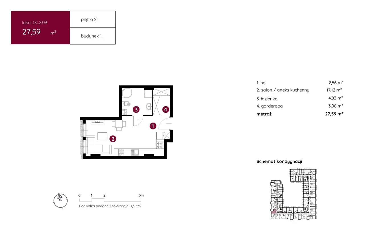 - Charakterystyka mieszkania 27.59 m2, 1 pokój