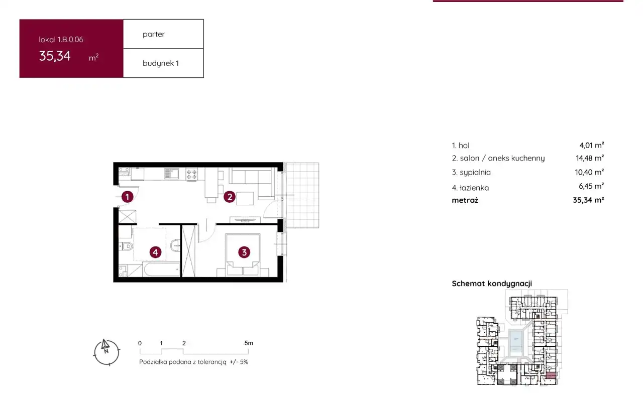 - Charakterystyka mieszkania 34.35 m2, 2 pokoje