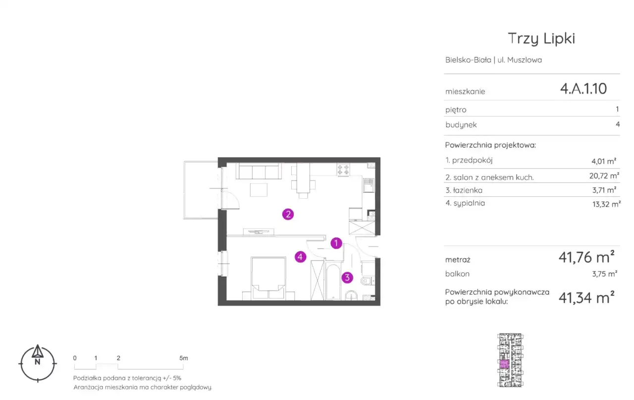 - Charakterystyka mieszkania 41.34 m2, 2 pokoje