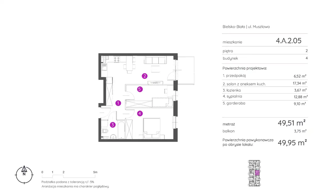 - Charakterystyka mieszkania 49.95 m2, 3 pokoje