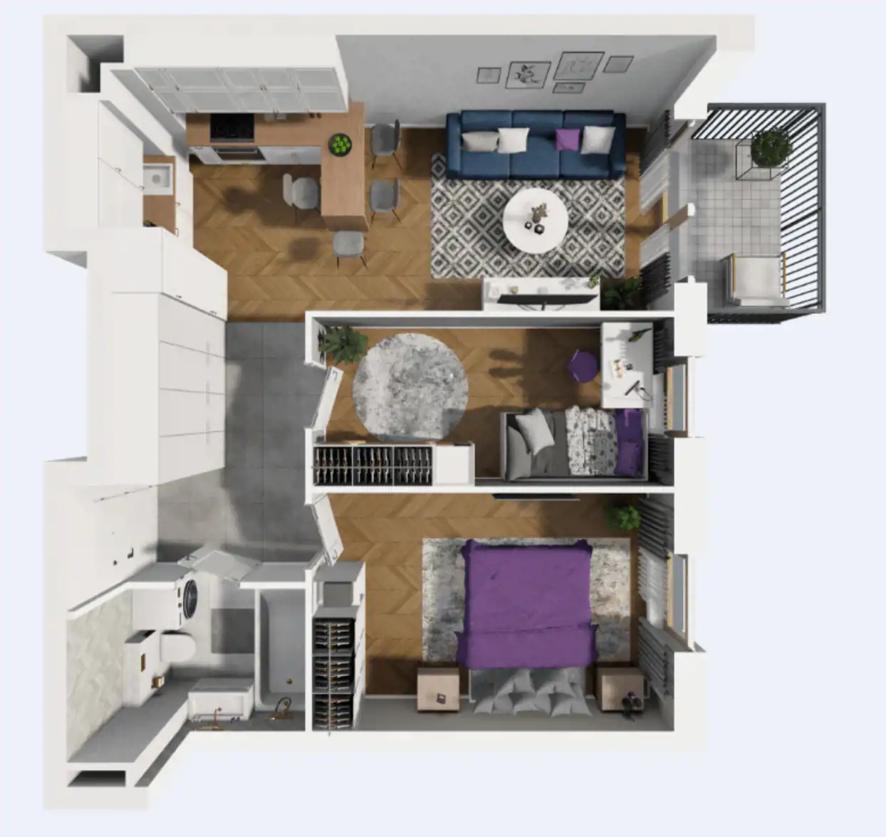 → 3 pokoje (2 sypialnie + salon z aneksem) -