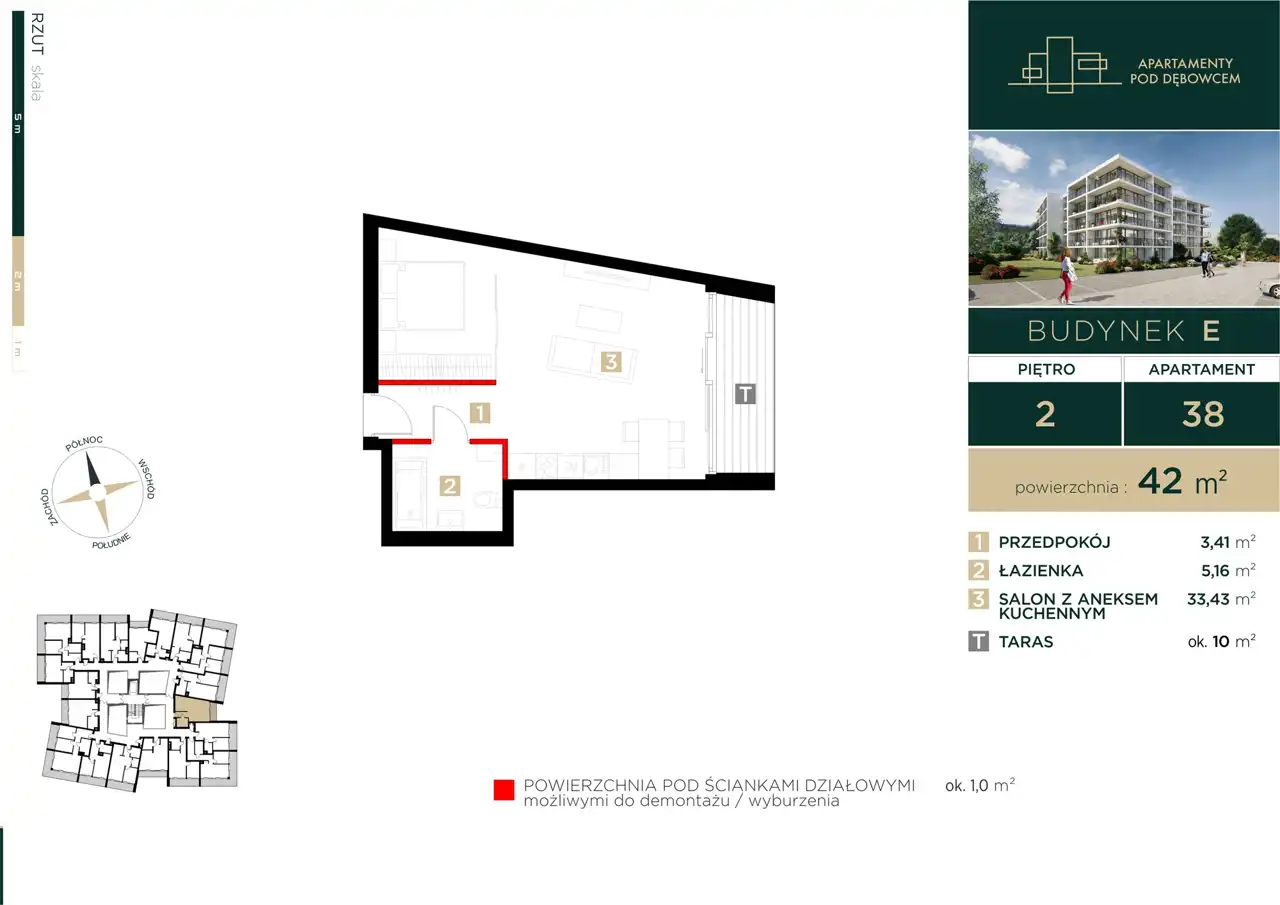 - Charakterystyka mieszkania 42.61 m2, 1 pokój