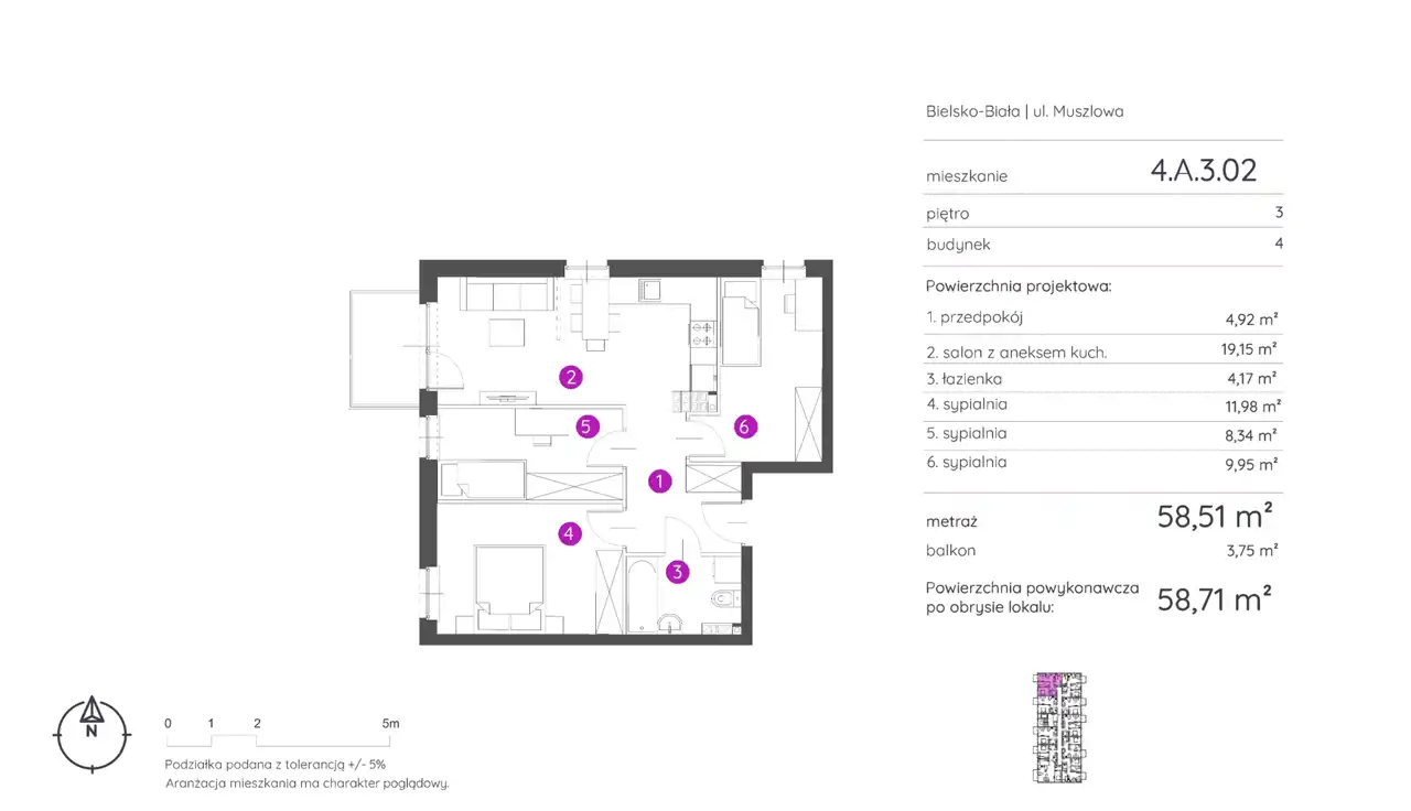 - Charakterystyka mieszkania 58.51 m2, 4 pokoje