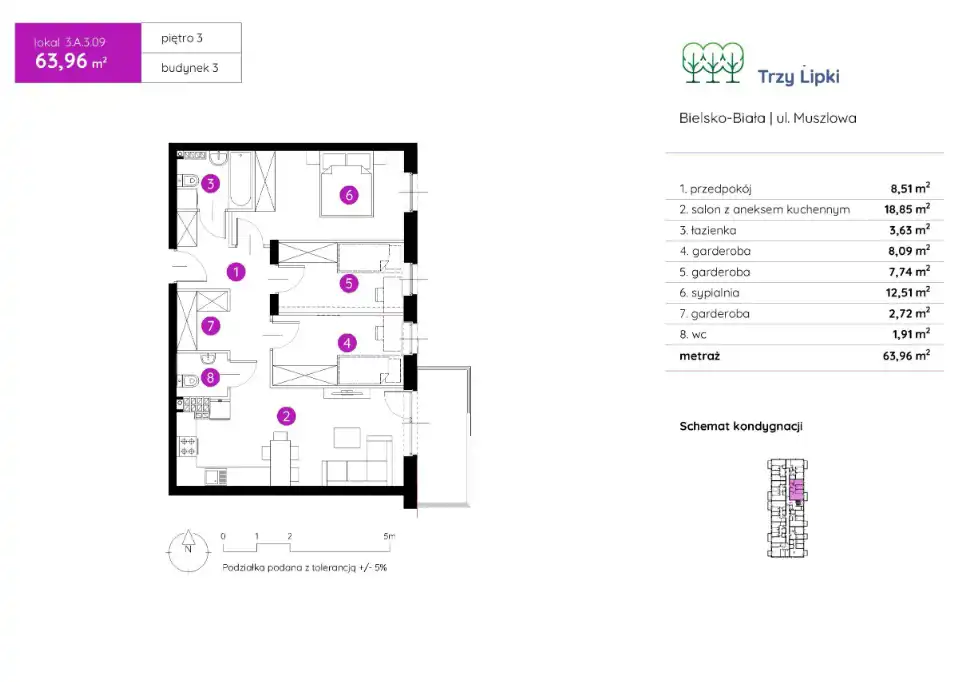 Lokalizacja: piętro 3, przy ul. Muszlowa w osiedlu Murapol Trzy Lipki.