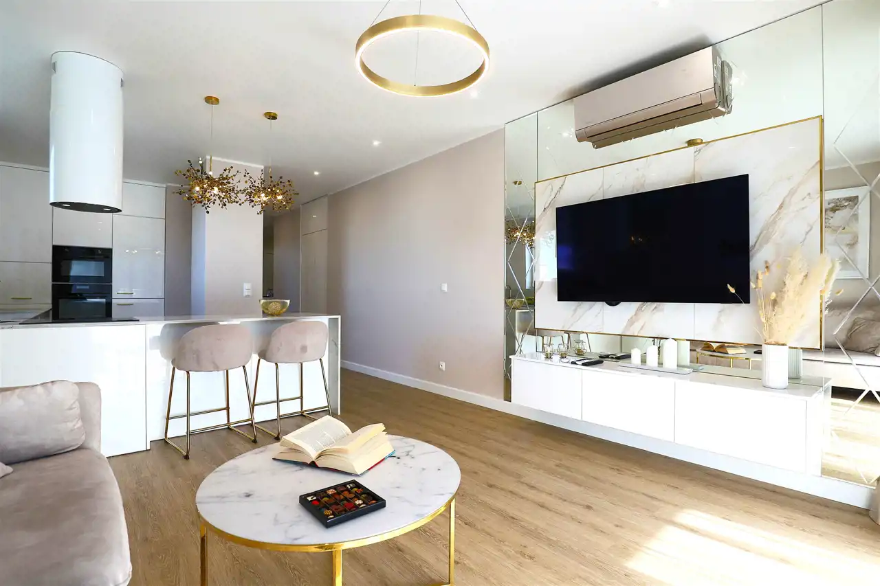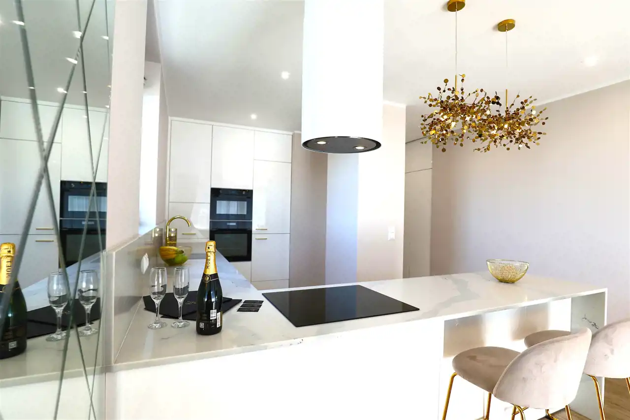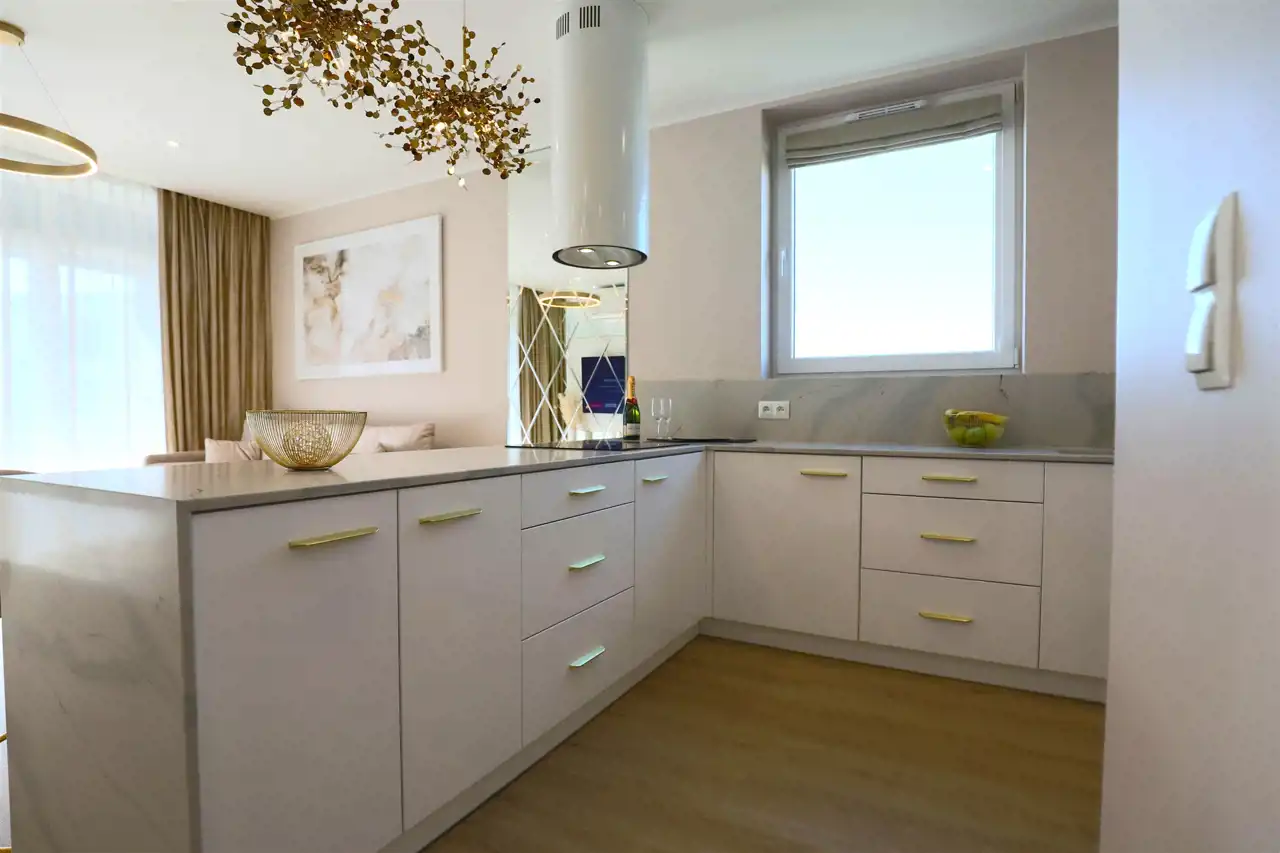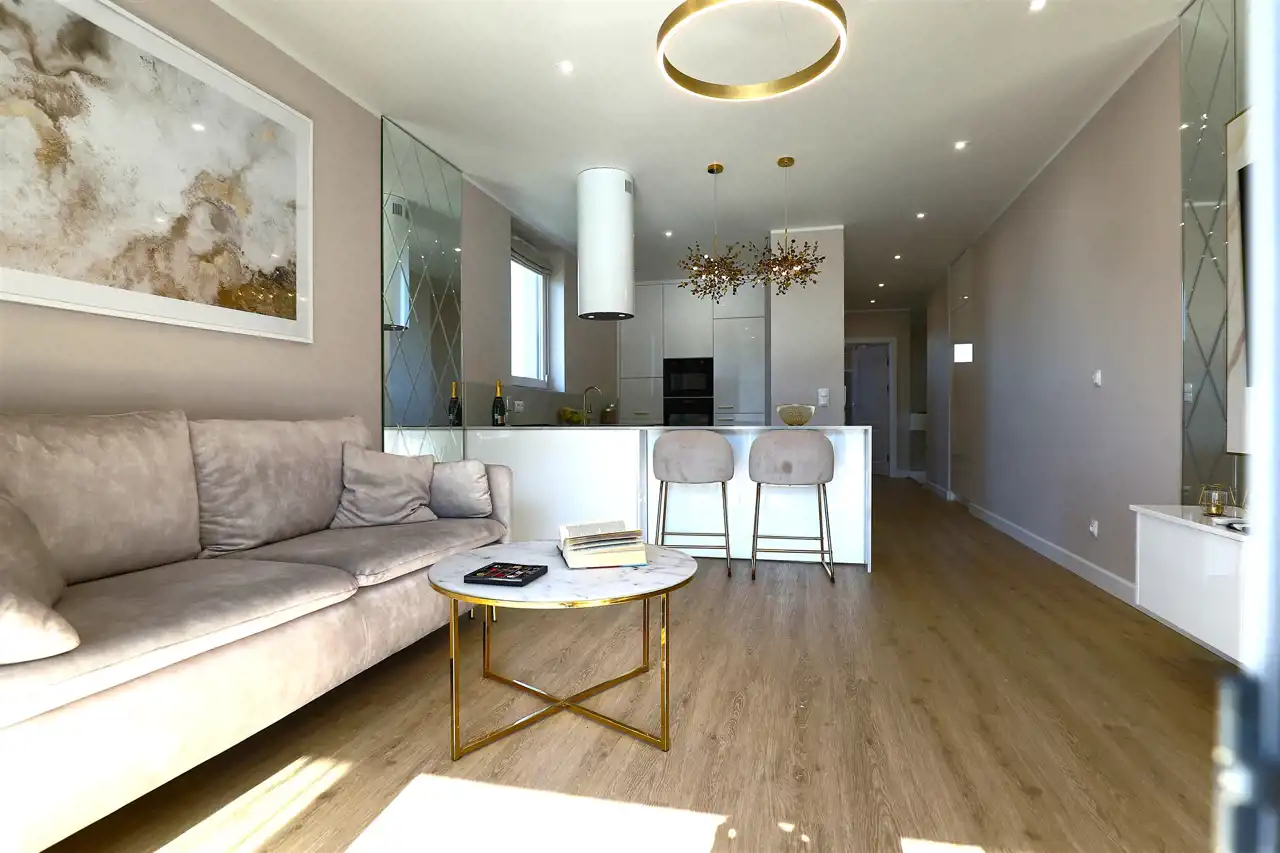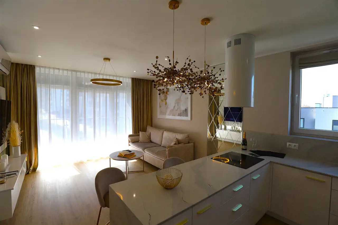 Standard wykończenia: Mieszkanie zostało urządzone z dbałością o każdy detal, z wykorzystaniem materiałów najwyższej jakości, zapewniając komfort i estetykę na najwyższym poziomie.