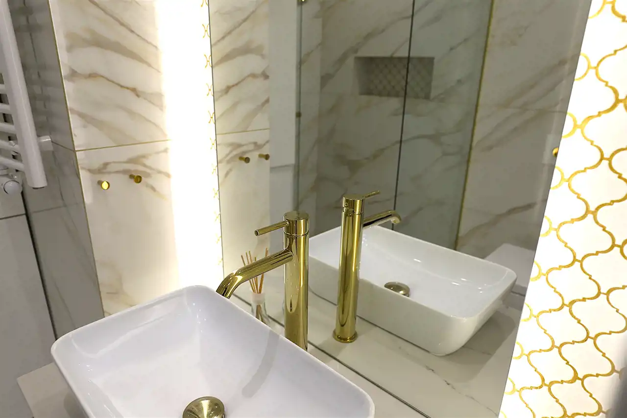 Złote dodatki, w tym stylowy kran bidetowy