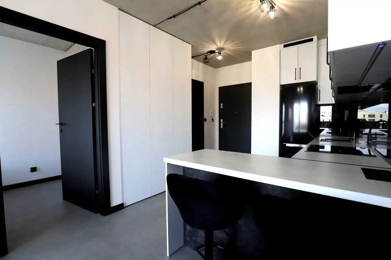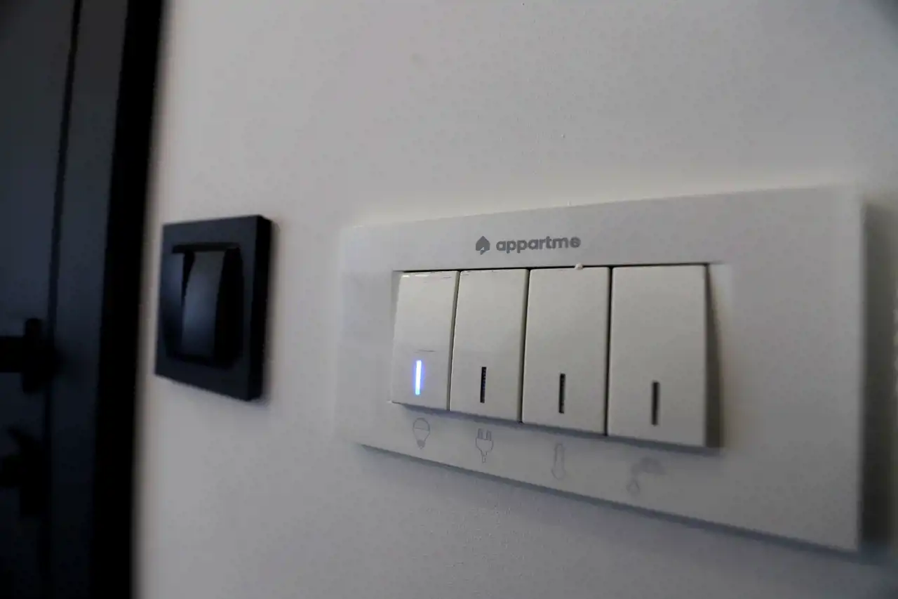 Mieszkanie wyposażone jest w system Smart Home z możliwością sterowania wybranymi funkcjami z poziomu aplikacji mobilnej. Pozwala to na wygodne zarządzanie mieszkaniem oraz bardziej efektywne gospodarowanie energią, co może przełożyć się na niższe rachunki za prąd i ogrzewanie.