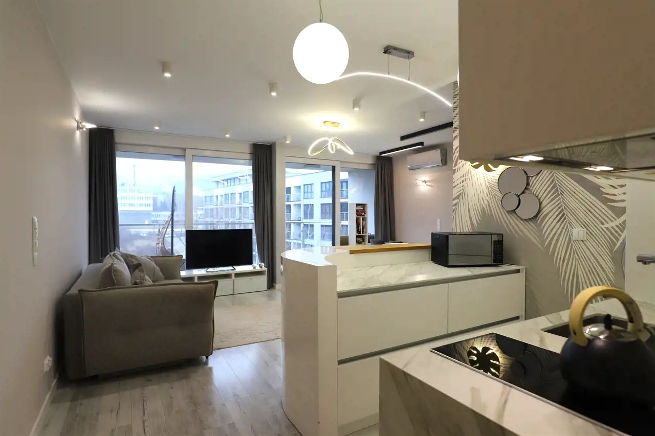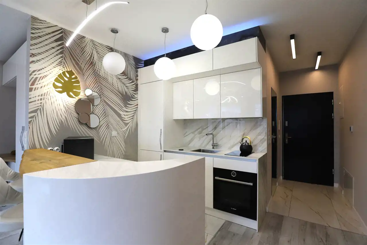 Mieszkanie o powierzchni 40 m² zostało zaprojektowane przez architekta i wykończone z dbałością o najdrobniejszy detal. Użyte materiały oraz wyposażenie AGD i RTV reprezentują klasę Premium, gwarantując komfort i niezawodność.