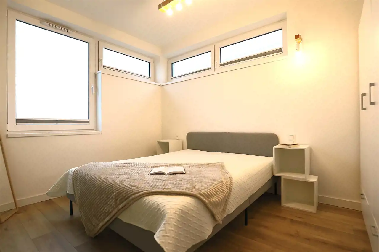 - Duża sypialnia – komfortowa i dobrze doświetlona, idealna do relaksu.