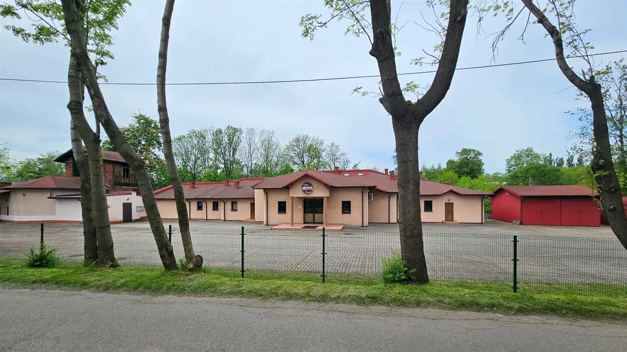 Budynek o powierzchni całkowitej 614 m2 / powierzchni zabudowy 700 m2 położony jest na dwóch działkach o łącznej powierzchni 26 ar.