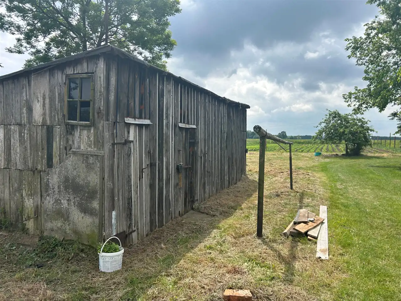 Na terenie posesji są zabudowania gospodarcze przynależne do tego lokalu, oraz działka rolna o powierzchni 0,0571 ha.w kształcie litery L. o numerze (161/65)