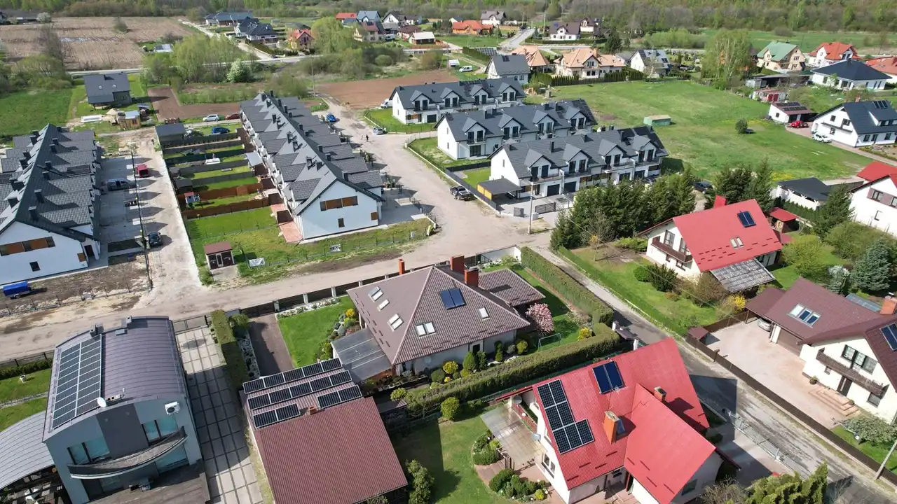 na dachu zainstalowane panele fotowoltaiczne o mocy 5,67 Kw ( 14 paneli).