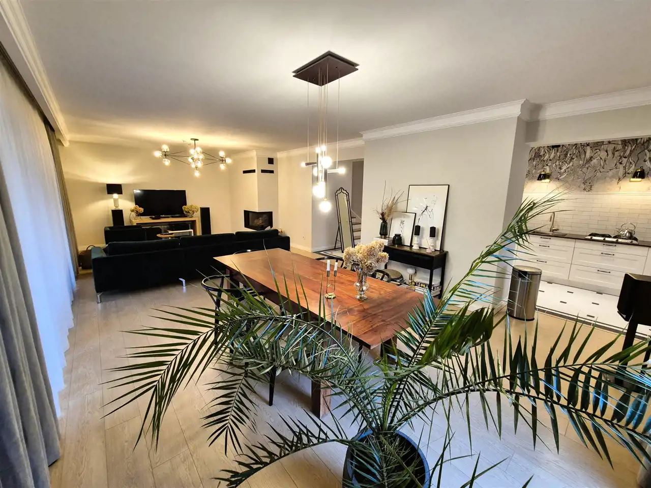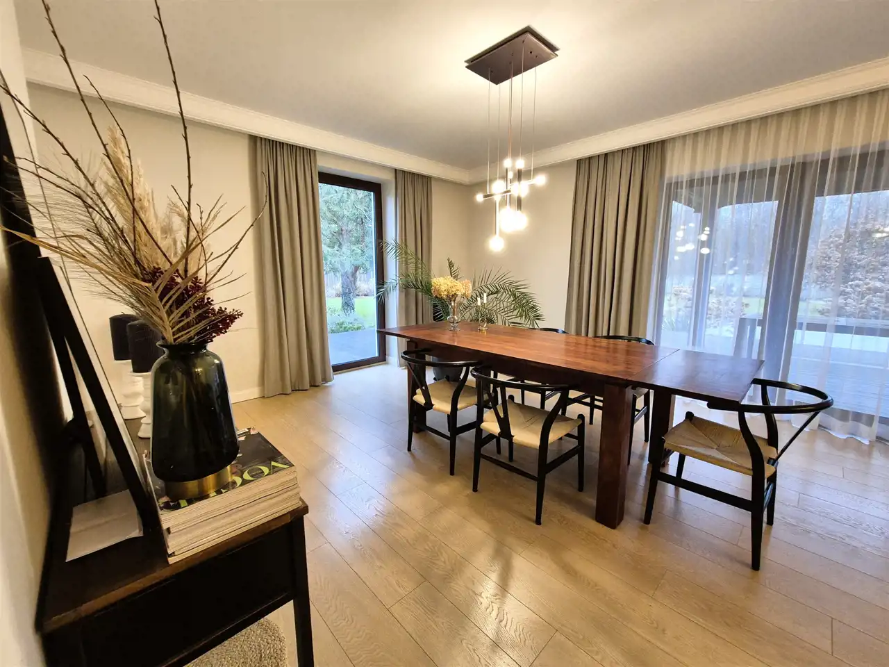 wnętrza zostały urządzone w gustownym, nowoczesnym stylu, zapewniając harmonijną przestrzeń do codziennego życia,