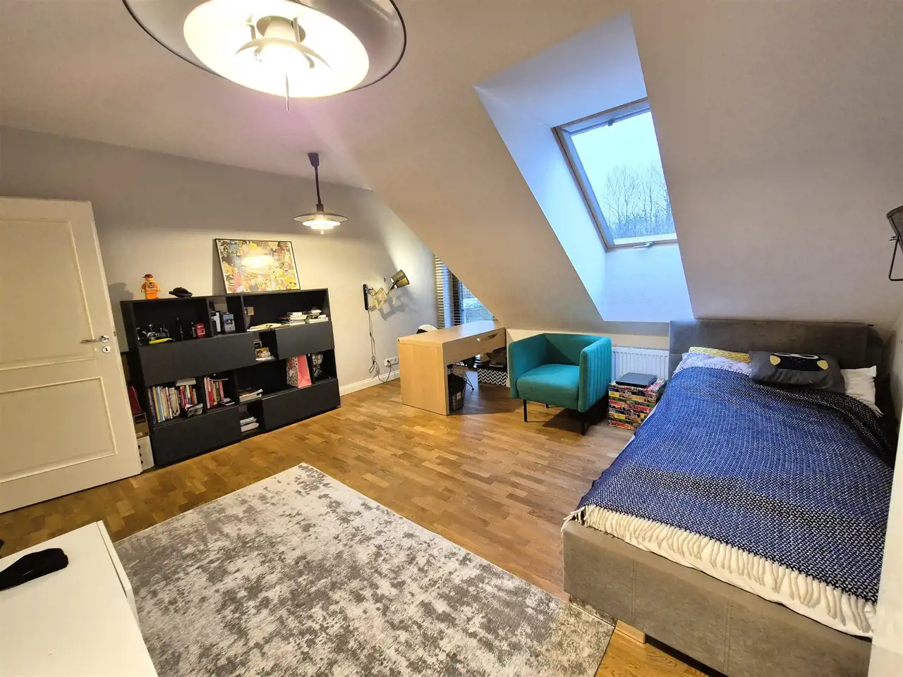 - poddasze: 3 przestronne sypialnie , łazienka z dużymi przeszkleniami, co zapewnia jej naturalne doświetlenie wraz z przyległą pralnią, garderoba,