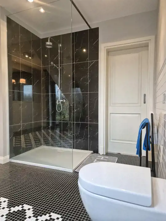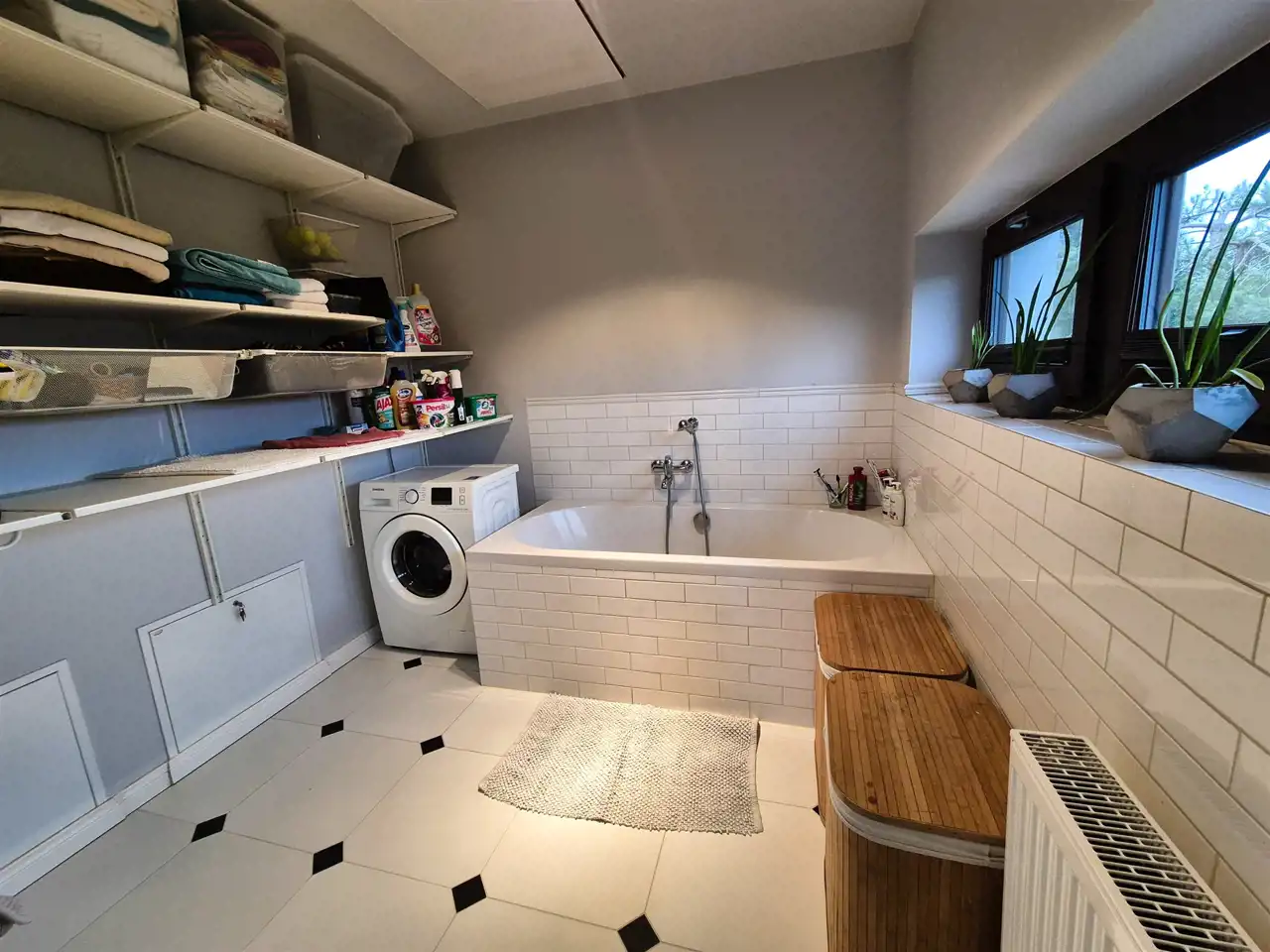ogrzewanie podłogowe - na parterze ( z wyjątkiem gabinetu), na poddaszu w łazience oraz pralni,