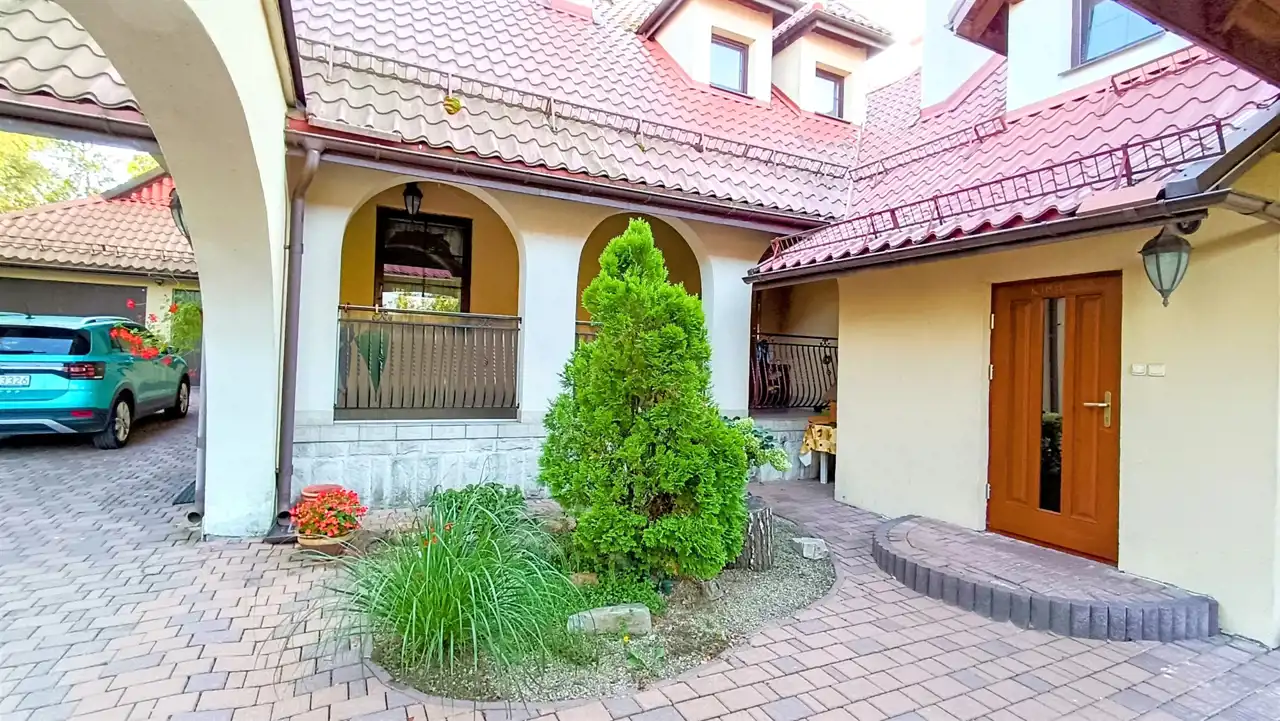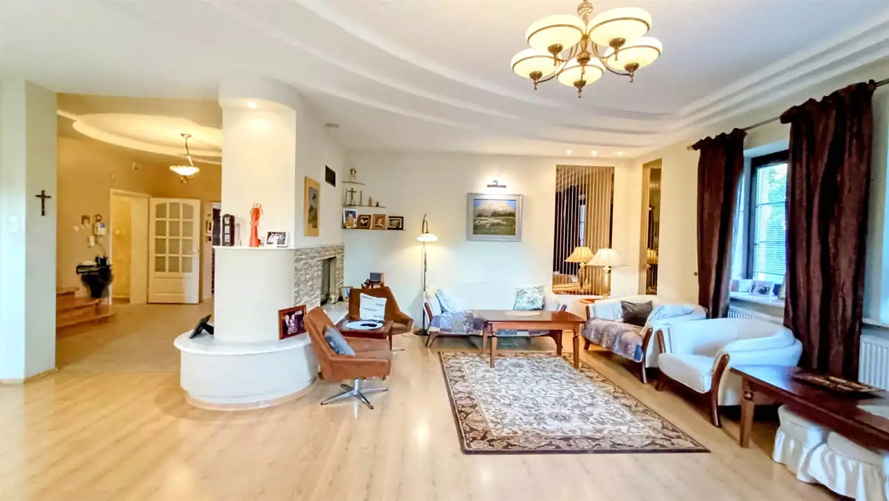 Zapraszam do zapoznania się z ofertą pięknego, przestronnego domu jednorodzinnego o powierzchni użytkowej 428 m2 położonego w drugiej linii zabudowy 300 m od centrum Biłgoraja.